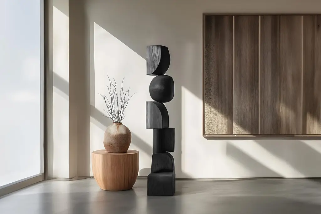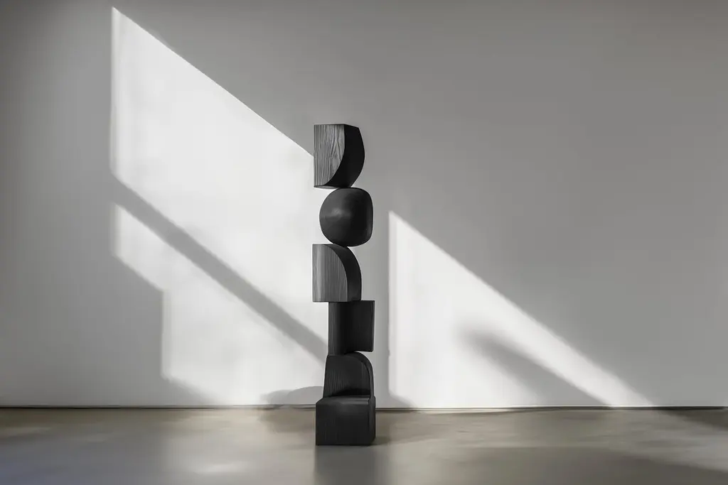 Elegant Biomorphic Sculpture, Black Solid Wood by Escalona, Still Stand No88——Joel Escalona's wooden standing sculptures are objects of raw beauty and serene grace. Each one is a testament to the power of the material, with smooth curves that flow into one another, inviting the viewer to pause and reflect. The sculptures themselves are like silent sentinels, standing guard over the spaces they inhabit, filling their viewers with a lust to touch them.In a world filled with noise and chaos, Escalona's sculptures offer a moment of calm and tranquility. They invite the viewer to bask in their serenity, to slow down and appreciate the beauty of nature, the beauty of wood, and the beauty of art.Wood is a medium that offers so many benefits to art and design, beyond visual aesthetics. It's soft enough to be easily worked by hand, yet strong and hard enough to take on virtually any form. Escalona has harnessed the qualities of oak and walnut, natural materials that have been waiting for 3-4 months, to create these sculptures. Each piece is made to order, so some changes may happen to the final design due to the material and process, but that's what makes each piece so unique and special.——NONO is a Mexican design brand with more than 10 years of experience dedicated to the production of interior furnishings, editions, and custom-made projects. At NONO, we create pieces of extraordinary beauty, accommodating the particular needs and tastes of each client with exclusive high-quality designs.————Some details to consider when placing an order with us:• Catalog images are digitally generated. Actual products may slightly vary in texture, grain, and final finish due to natural material differences. Despite these variations, our expertise ensures each piece maintains high quality and matches the intended design.• All of our products are made to order, and the lead time for standard products is estimated to be 9 to 12 weeks, plus shipping time. However, special pieces or sculptures may require a longer lead time.• We offer customization in dimensions and finish for all of our furniture pieces, which may result in additional charges.• We only facilitate freight services by a third party. The client is solely responsible for any associated import/export taxes, as well as any necessary customs paperwork.• We are not responsible for any damages that may occur during shipping or for any customs-related delays.