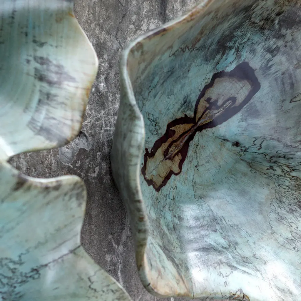 This Set Of Three Wood Wall Art Features Naturally Spalted Tamarind Wood, Finished In A Soft Blue-green. Because Each Is Individually Handcrafted, Sizes May Vary. Cracks And Variations In The Grain Are Natural To This Type Of Wood.• Includes three bowls, one of each size shown. Small: 10" dia x 5" deep; Med: 15" dia x 7" deep; Lg: 16" dia x 7" deep.• Hand Finished Tamarind Wood• Properly weighted hanging hardware attached. Includes three bowls. Purchase multiple sets to make spectacular groupings.• Heirloom Quality - Expertly hand crafted and hand finished. Due to the hand crafted nature of this piece, each piece may have subtle differences.