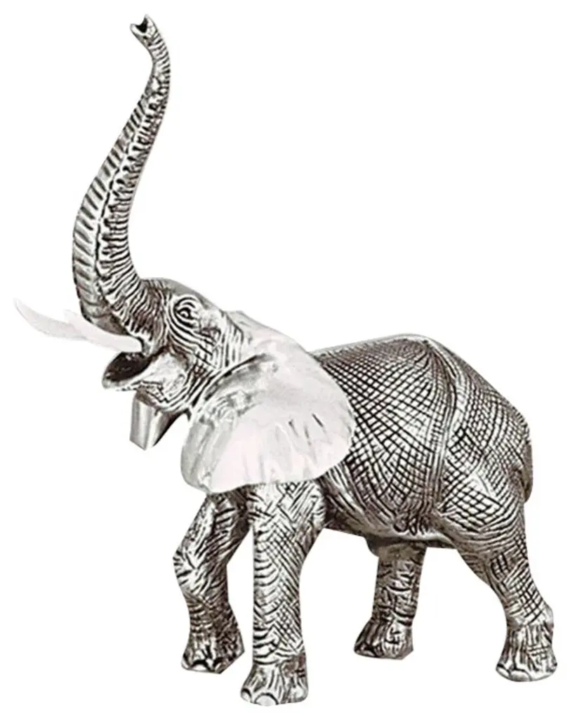 This exceptional Elephant Silver Plated Sculpture captures the beauty and strength of the majestic elephant. Our swimming elephant silver plated sculpture by D''Argenta is an elegantly crafted piece featuring a majestic elephant cooling in the still water, mighty trunk poised high in the air. Positioned facing the entrance of your room, this elephant is certain to bring happiness and prosperity to your home. Weight: approx. 3 lbs. About D''Argenta Silver EleganceOrnate in design, exquisite in detail, and beautifully elegant, the Sterling Silver Plated products created by the artists of D''Argenta Silver Elegance are the perfect heirloom quality pieces for any home. The distinctive sterling silver designs stand out against the black neillo inlay and the intricate detail is breathtakingly attractive. D''Argenta Silver Sculptures and objects d''art offer unparalleled excellence in quality and exquisite attention to detail, because they are the hallmarks that have established D''Argenta as a leader in the export of precious metal-finished art for over a quarter of a century. Each of the over 200 limited-edition sculptures, personally signed by the artist, is technically flawless yet competitively priced..the same master-craftsmanship received in pieces that have been gifted to royalty, heads of state and the Vatican. From the surface detail of the innumerable tumuli and broad swells that impart the hides of the elephant collection to the graceful lines that capture the motion of a stallion''s gallop, you will marvel at the beauty of your truly unique acquisition as it graces a special place in your home. Historically, sculptures composed of precious metals were crafted using the traditional hot casting process. 25 years ago, the artisans at renowned metal art company D''Argenta introduced an advanced new metalworking technique that changed the way precious metals are sculpted. D''Argenta''s new method combined cold casting and electroforming to create intricate, finely detailed sculptures. The pieces are initially plated with a . 015 inch (400 micro) thick layer of copper, then plated with silver or (24K) gold at a thickness of . 001 inch (24 micro). Each sculpture''s interior is composed of a polyester fiberglass core that strengthens sleek metal plating. After being formed, each piece is coated with a protective lacquer to prevents tarnishing and maintain luster. This final step ensures that all D''Argenta sculptures, though crafted with fine silver, do not require polish or any type of metal cleaner and can be simply dusted with a dry cloth as needed. Exported around the world and now available in over 25 countries, D''Aragenta''s products have won international acclaim because of their innovative construction and exquisite beauty. In 1981, D''Argenta was recognized with the Bulgarian Government Gold Medal award. In 1992, a D''Argenta sculpture was gifted to His Royal Highness Prince Naruhito of Japan on a visit to Mexico. A nod to the company''s exclusive prestige, D''Argenta sculptures have been gifted to an increasingly long list of dignitaries, including Pope John Paul II, Prince Phillip of England, and his Majesty King Harald of Norway. The gifted artists of D''Argenta include: Manuel Alvarado, Ricardo Del Rio, Enrique Jolly, Javier Arenas Perez, Claudio Rodr