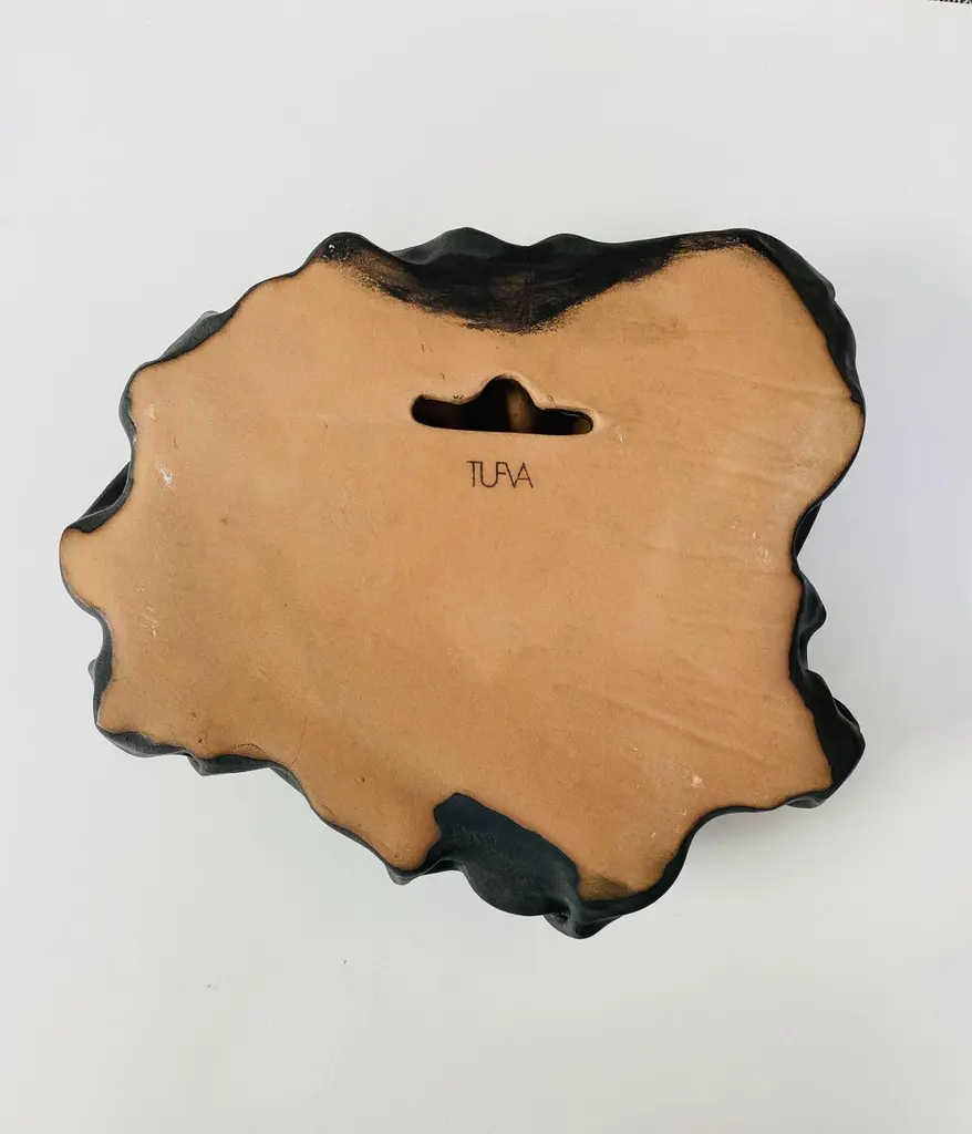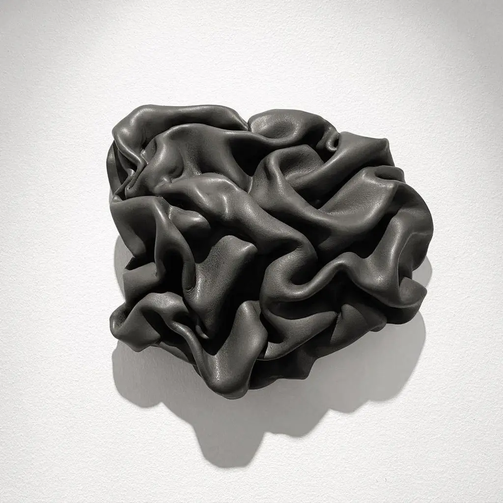 Emboss wall sculpture I by Sophie RogersDimensions: D 8 x W 32 x H 25 cmMaterials: Ceramic, glazeOther glaze colors available.Wall sculpture with undulating shape like a draped piece of cloth. Changes expression depending on the light around it and the day’s sunlight. The size differs from piece to piece as they are all unique and handmade.Sculptor Sofia Tufvasson started her professional life as a graphic designer but after 20 years she decided to shift her focus to clay and ceramics. Today Sofia is creating beautiful handcrafted sculptures from her studio in Stockholm.Clay has always been a fascinating material for Sofia Tufvasson. Having worked in the two dimensional world as graphic designer, the clay offered her freedom to think and create three-dimensionally. Her inspiration is found in everyday situations and places such as nature or a shape or certain shadow she passes.Sofia works to emphasise the playfulness of the shadows her pieces cast. It gives them an additional dimension, making them feel alive and interesting. The material is always clay but the type of clay varies depending on the glazing and the desired expression of each individual piece. Sofia works mostly with matte versions of glaze since they help to reinforce the shadows created by a sculpture.