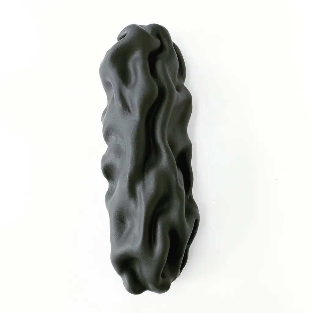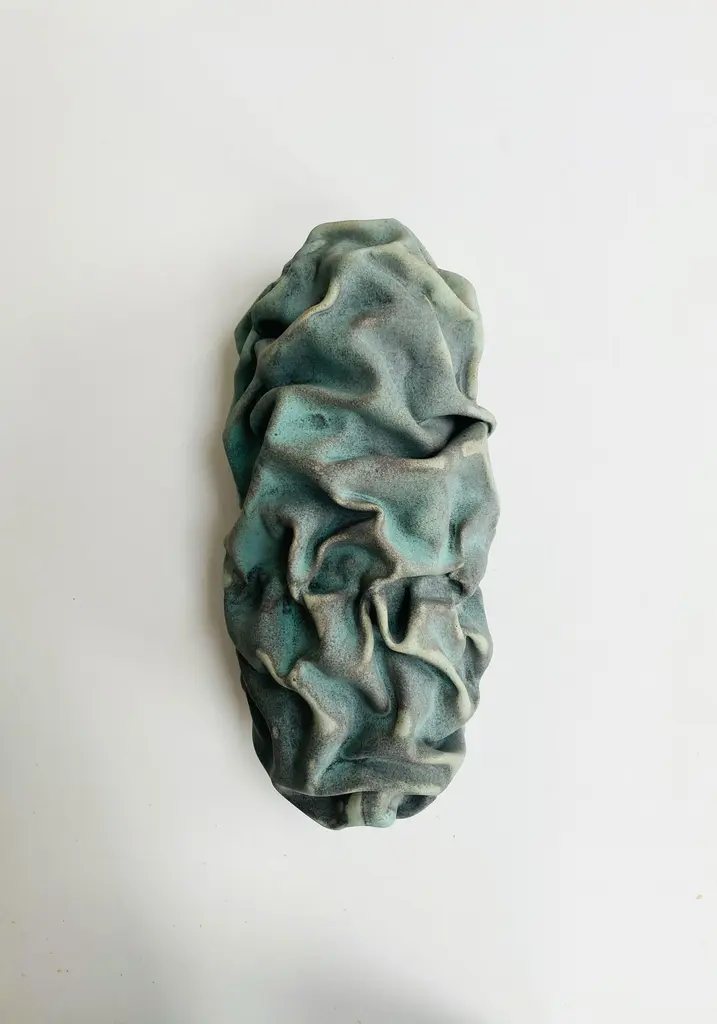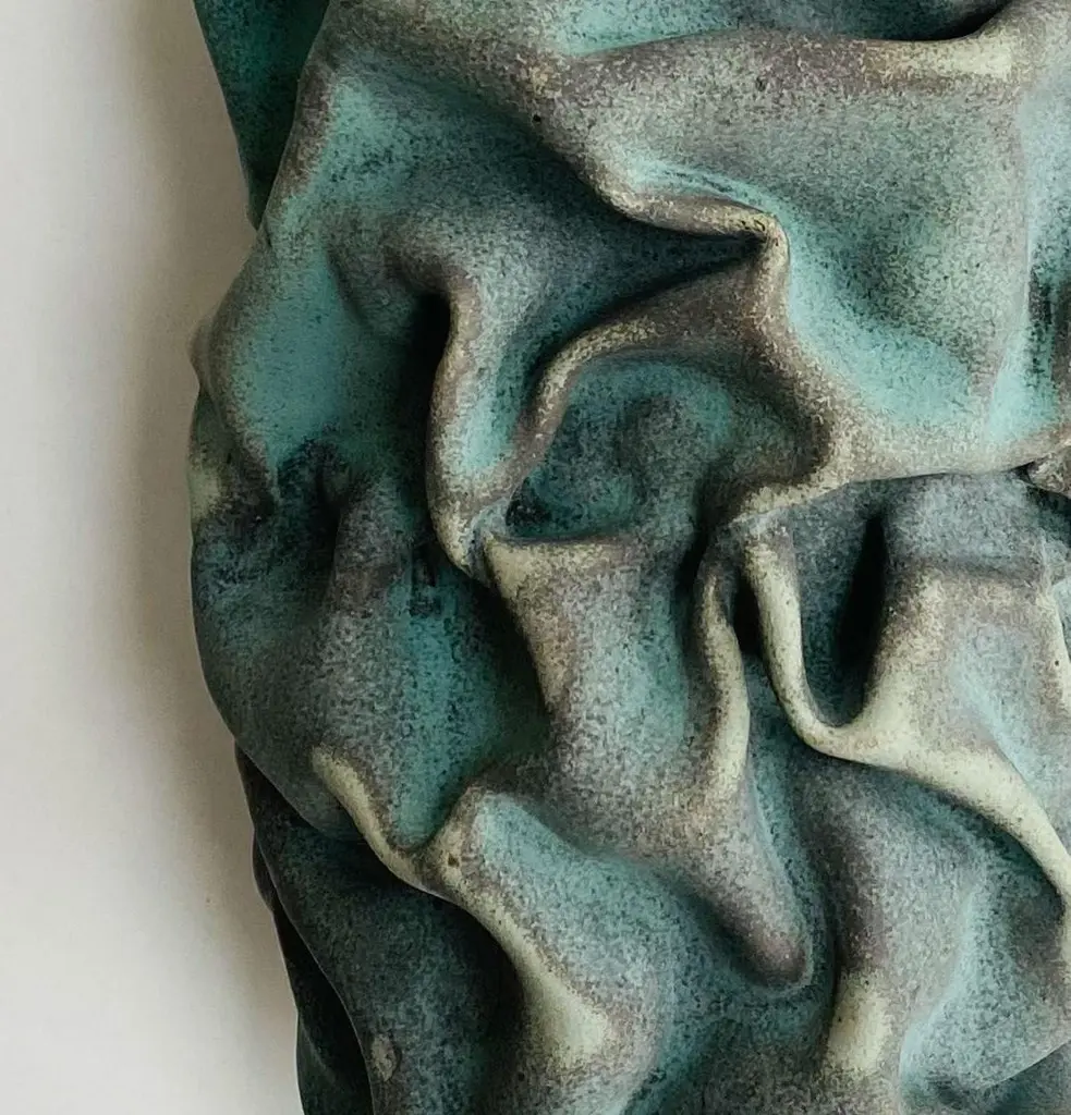 Emboss wall sculpture III by Sophie Rogers.Dimensions: D 9 x W 15 x H 31 cm.Materials: Ceramic, glaze.Other glaze colors available.Wall sculpture with undulating shape like a draped piece of cloth. Changes expression depending on the light around it and the day’s sunlight. The size differs from piece to piece as they are all unique and handmade.Sculptor Sofia Tufvasson started her professional life as a graphic designer but after 20 years she decided to shift her focus to clay and ceramics. Today Sofia is creating beautiful handcrafted sculptures from her studio in Stockholm.Clay has always been a fascinating material for Sofia Tufvasson. Having worked in the two dimensional world as graphic designer, the clay offered her freedom to think and create three-dimensionally. Her inspiration is found in everyday situations and places such as nature or a shape or certain shadow she passes.Sofia works to emphasise the playfulness of the shadows her pieces cast. It gives them an additional dimension, making them feel alive and interesting. The material is always clay but the type of clay varies depending on the glazing and the desired expression of each individual piece. Sofia works mostly with matte versions of glaze since they help to reinforce the shadows created by a sculpture.