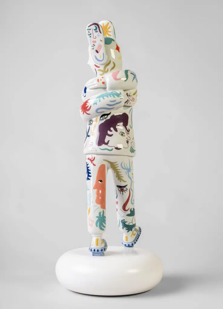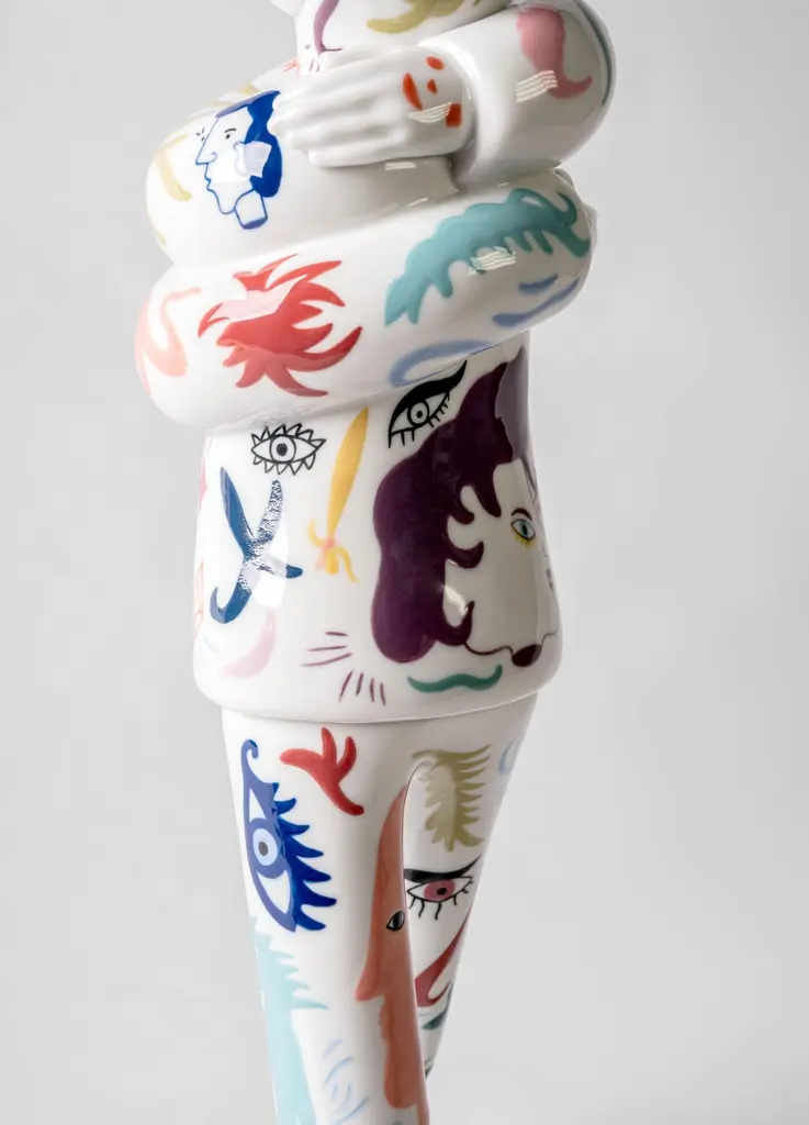 Porcelain creation depicting Jaime Hayon’s latest creation. A work that speaks about looking after oneself and harmony. Jaime Hayon’s latest creation in porcelain for Lladró is a new character sure to be another resounding success. Ten years after first creating The Guest, the celebrated Spanish designer is presenting Embraced, a person hugging himself. In the artist’s own words: “it represents the concept of looking after yourself.” Embraced is decorated with the signature designs from Hayon’s work. A contemporary innovative creation focused on emotional and affective expression.