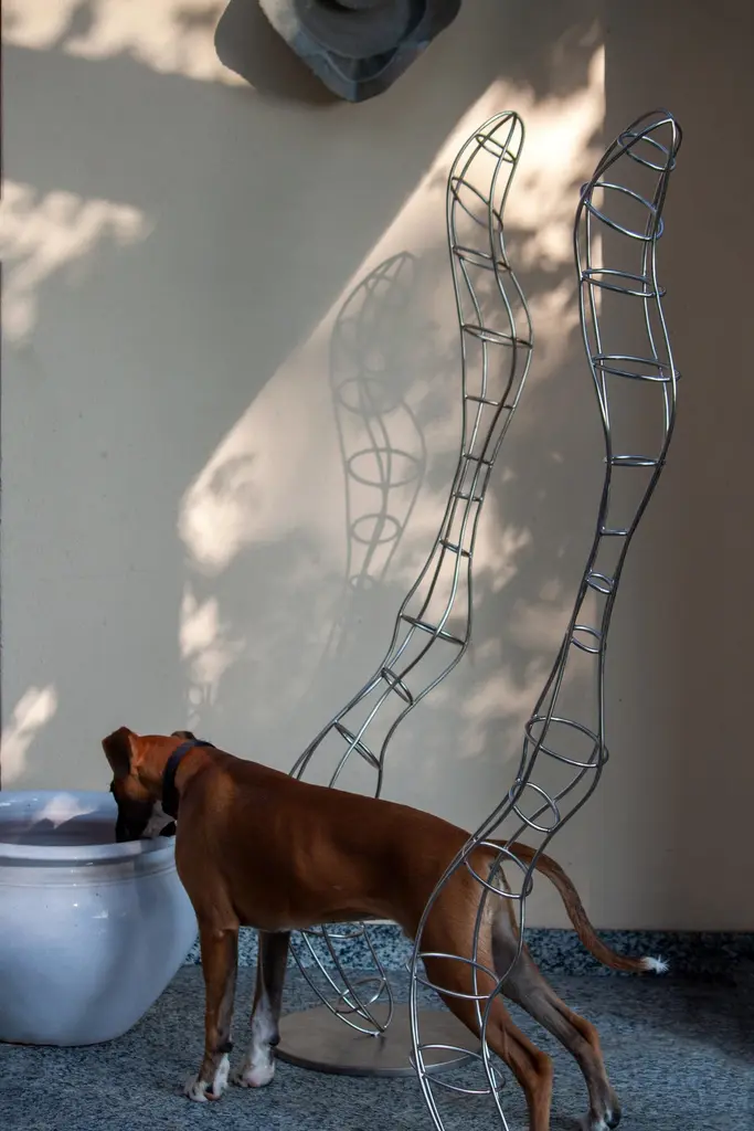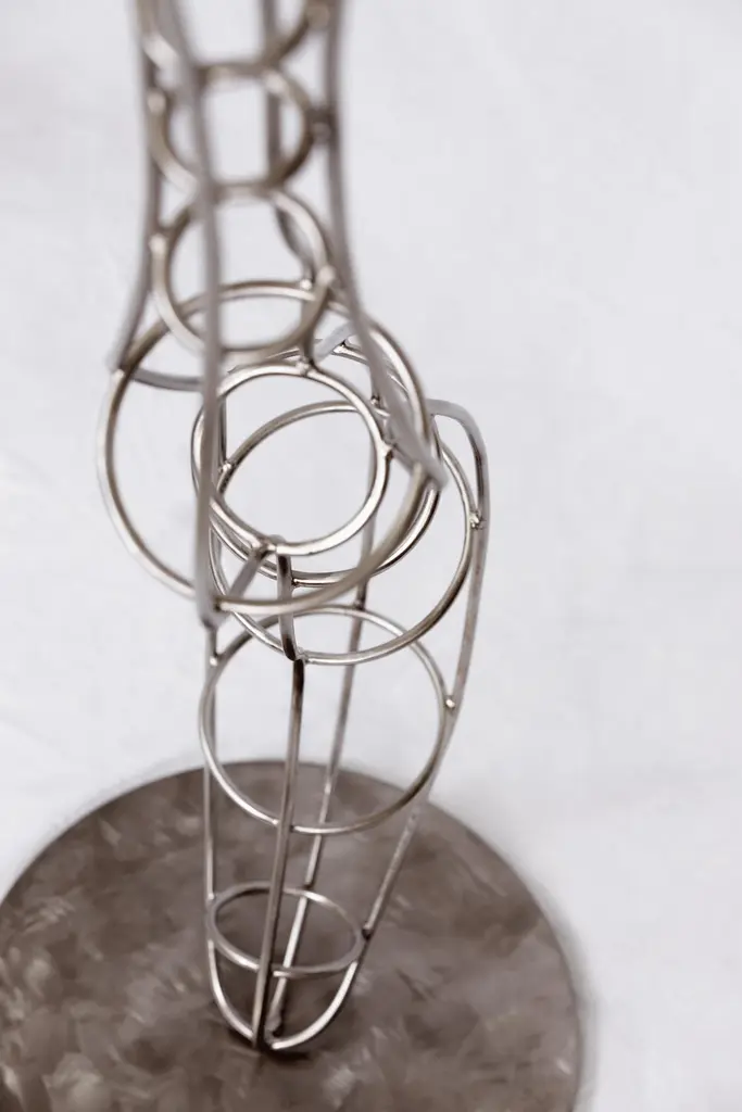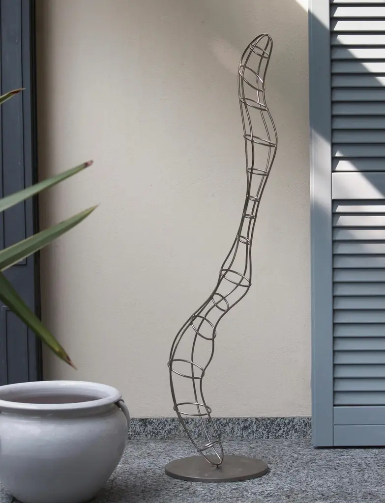 Emrbyo Outdoor Sculpture by Alice CrepaldiUnique Piece.Dimensions: D 30 x W 35 x H 150 cm.Materials: Metal.Alice Crepaldi is a versatile multidisciplinary artist hailing from Milan, Italy. Her artistic endeavors are deeply entrenched in the realms of functional art, sculpture, and furniture design. The harmonious blending integration of sculptural quality into everyday functional objects in her work owes much to her background in industrial design, followed by her transformative studies at the prestigious Central Saint Martin’s School of Art in London.Alice’s artistic vision is fueled by her fascination with the energy and movement of the human body and nature - elements she combines into unconventional and organic forms to craft dynamic and vibrant presences within space. With a primary focus on metal and glass, she strives to elevate functional objects to realms of contemplation by pushing the boundaries of traditional techniques while infusing them with a contemporary twist.Through her creations, Alice beckons viewers to explore objects, to fall in love with them, to imbue them with value, and to be enthralled by an idea of movement and uniqueness that reflects our true nature as human beings.