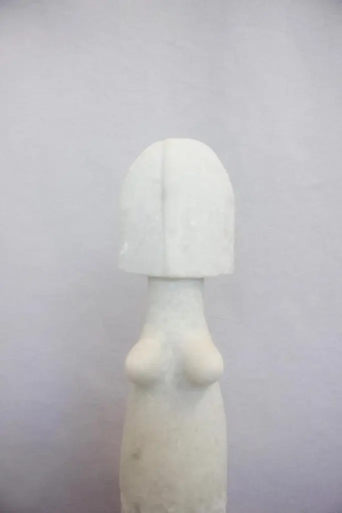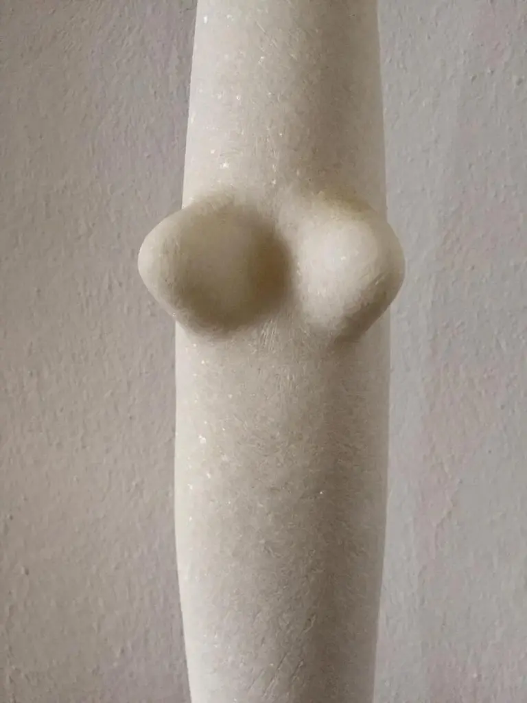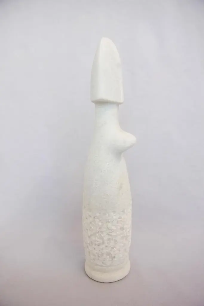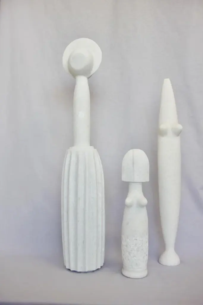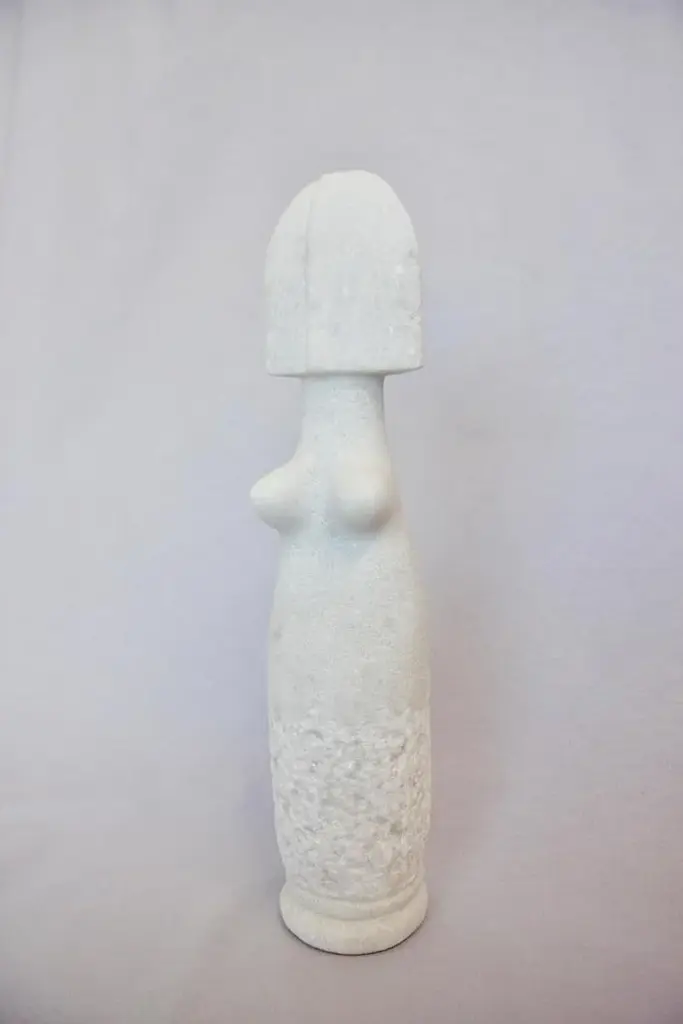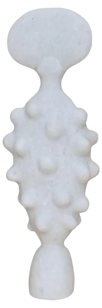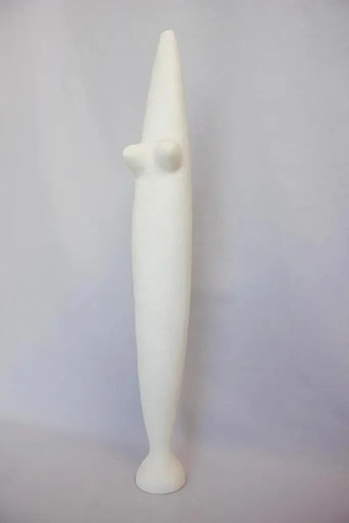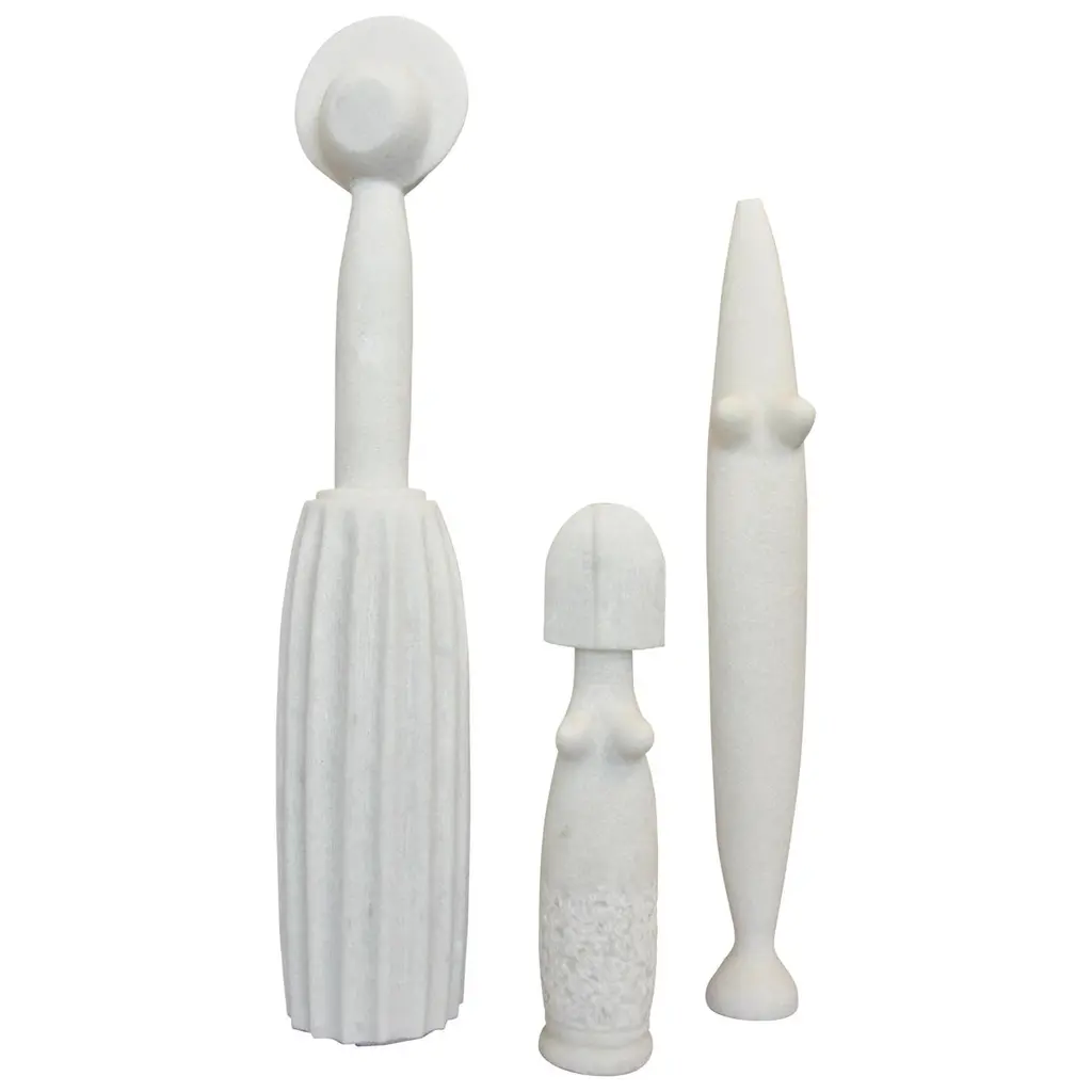Ensemble of sculptures - naxian marble shelf sculptures - Tom von Kaenel. Dimensions: Hera: 75 x 7 x 7 cm Aphrodite: 62.5 x 5 x 5 cm Little woman: 37 x 7 x 7 cm Unique artworks signed by Tom von Kaenel Rare naxian marble. All the artworks of Tom von Kaenel are unique, handcrafted by himself. The stones all come from the surrounding marble quarries of the island. The naxian marble is of white, grey or yellow-brown color, its structure is crystalline. No measuring instruments other than compasses and scales are used in the production of an object. The eye decides on the final shape. The crystalline surfaces are shimmering. This gives the object a unique liveliness. Tom von Kaenel, sculptor and painter, was born in Switzerland in 1961. Already in his early childhood he was deeply devoted to art. His desire to bring beauty to the world is Tom von Kaenel’s inspiration, drive and source for the creation of his works. Already during his training as a technical draughtsman and later as a teacher of pictorial design, he devoted himself to painting and three-dimensional work. Tom von Kaenel has exhibited his work in various solo and group exhibitions. For seven years he was represented by Galerie Ute Barth in Zurich. Today Tom von Kaenel lives and works on the island of Naxos. Everything in his environment inspires and shapes his work. He creates objects and sculptures out of Naxian marble in craftsmanship liveliness and timeless beauty. This piece is attributed to the mentioned designer/maker. It has no attribution mark and no official proof of authenticity, however it is well documented in design history. I take full responsibility for any authenticity issues arising from misattribution