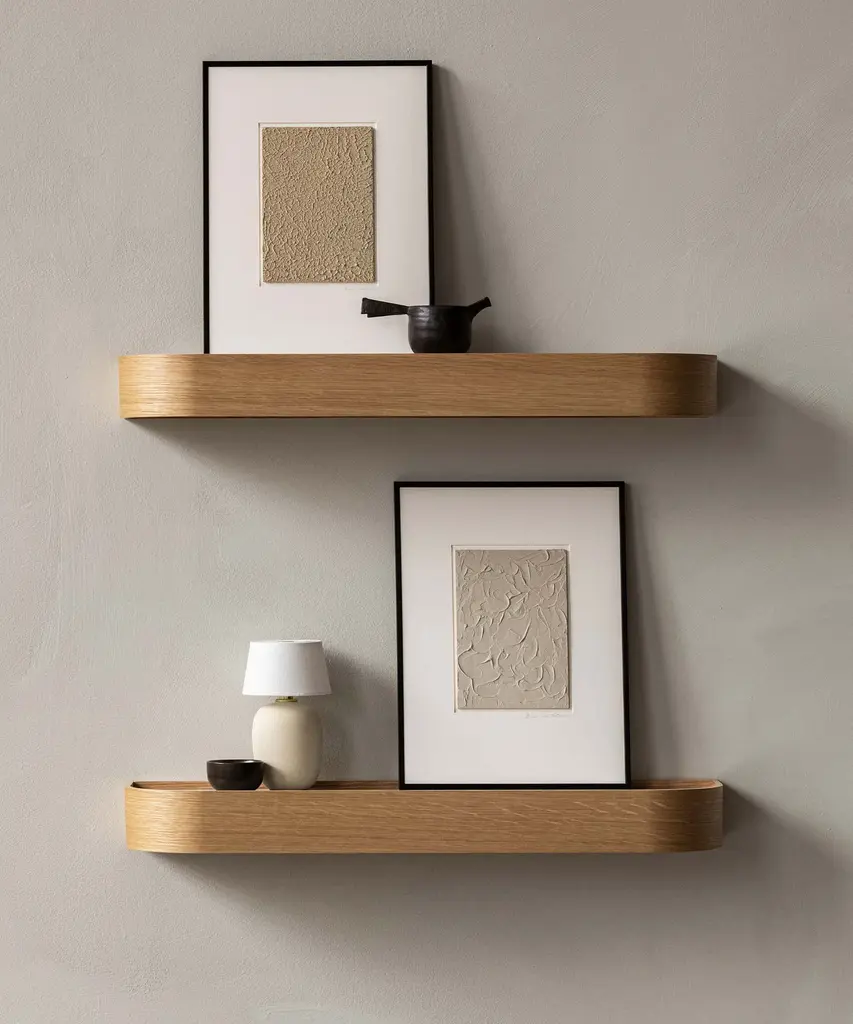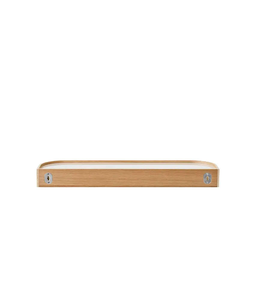 Clean lines, intuitive function and innate beauty define the Epoch Clothes Rack by Nina Bruun, one of two new designs from the Danish designer. Updating the ubiquitous coat rack and working from the idea of concealing unsightly hangers and tags behind something beautiful, the minimally elegant design profiles a considered combination of gently rounded edges, warm wood and discreet functionality. Developed and perfected over time, it is characterised by soft bands of undulating wood that sit like sculptures on a wall. Referencing 1950s design aesthetics and traditional craftsmanship, Epoch is pure in both form and material. Available in natural or dark stained oak, it is carefully sized to fit both purpose and place.Designed by Nina Bruun for Danish design company, Audo Copenhagen.