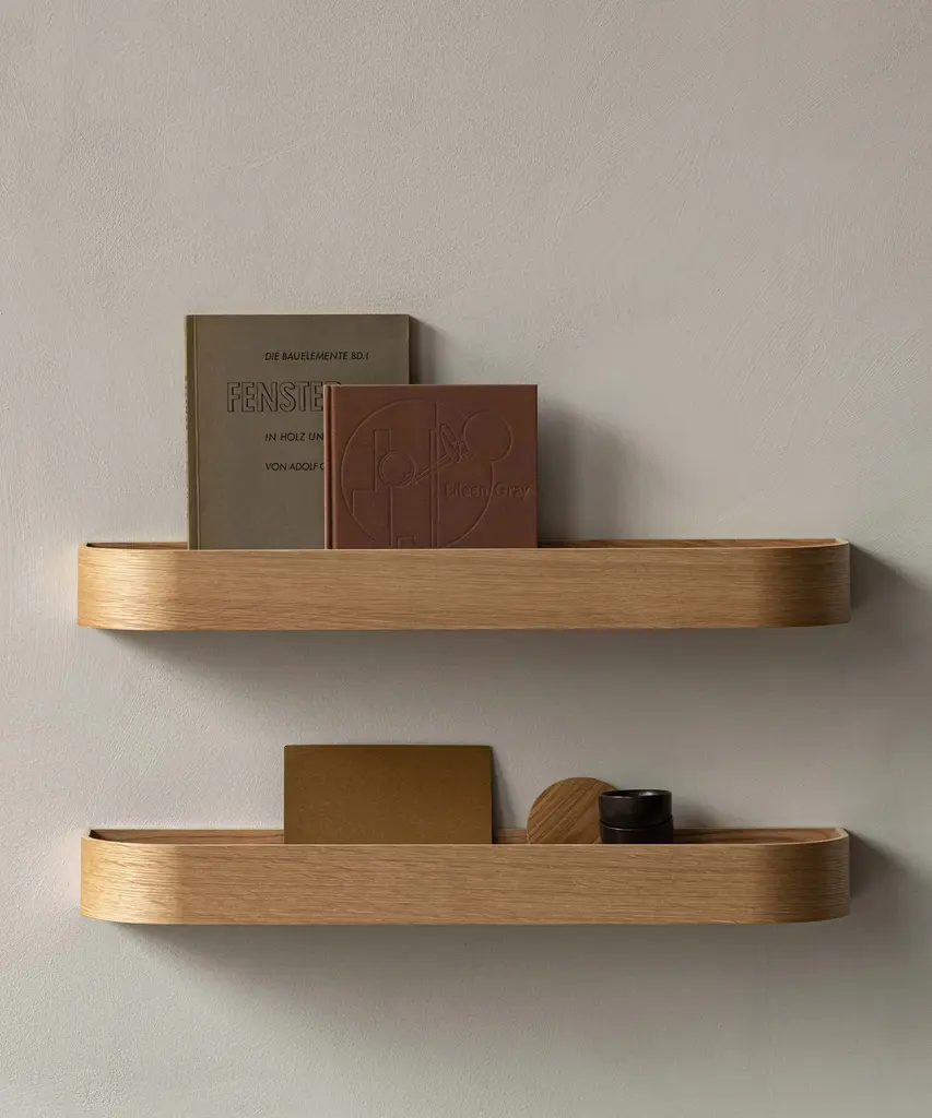 Clean lines, intuitive function and innate beauty define the Epoch Clothes Rack by Nina Bruun, one of two new designs from the Danish designer. Updating the ubiquitous coat rack and working from the idea of concealing unsightly hangers and tags behind something beautiful, the minimally elegant design profiles a considered combination of gently rounded edges, warm wood and discreet functionality. Developed and perfected over time, it is characterised by soft bands of undulating wood that sit like sculptures on a wall. Referencing 1950s design aesthetics and traditional craftsmanship, Epoch is pure in both form and material. Available in natural or dark stained oak, it is carefully sized to fit both purpose and place.Designed by Nina Bruun for Danish design company, Audo Copenhagen.