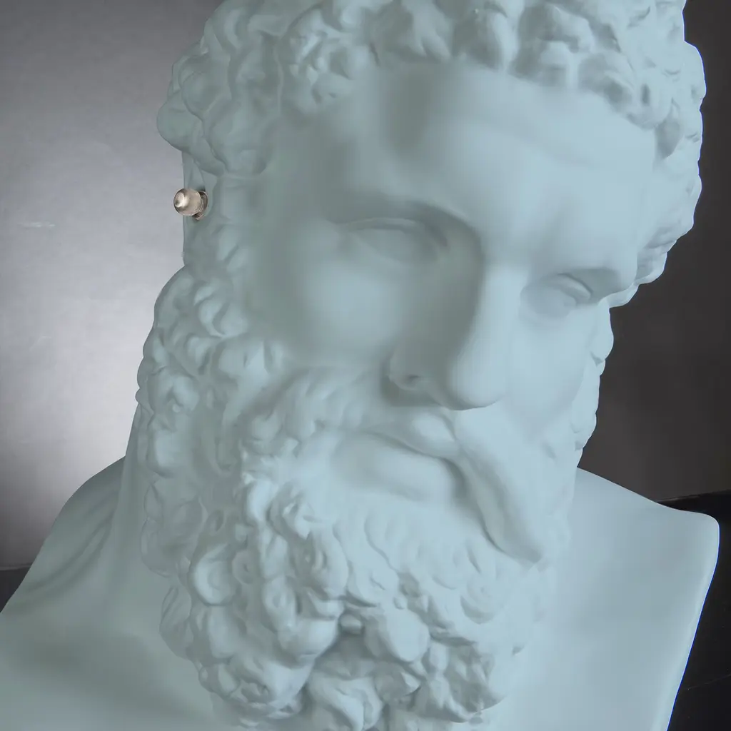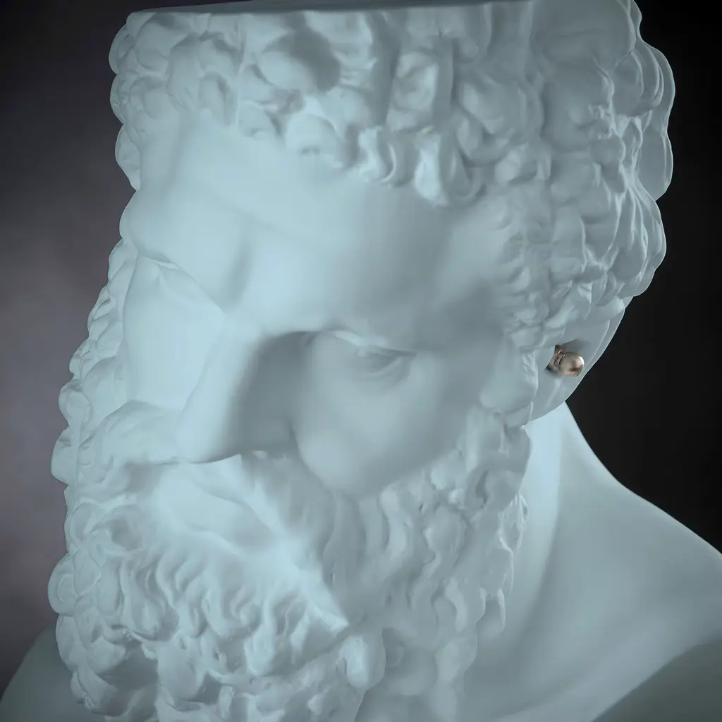 Named after the Italian words for "Hercules I can't hear", this handcrafted ceramic bust will elevate the look of a contemporary interior decor, particularly when displayed during an exclusive and elegant event. Richly detailed, the bust depicts Hercules rendered modern and singular by the addition of metal ear plugs finished in a polished golden hue.