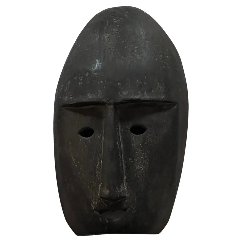 Made of clay, the Etu Black Mask Set includes two black masks that are medieval in their attitudes. The finish is rubbed onto the black sculptures so the clay shows through in spots to enhance the feel that these are aged artifacts. These are among our artisanal pieces that will be conversation starters in the spaces they will ornament.