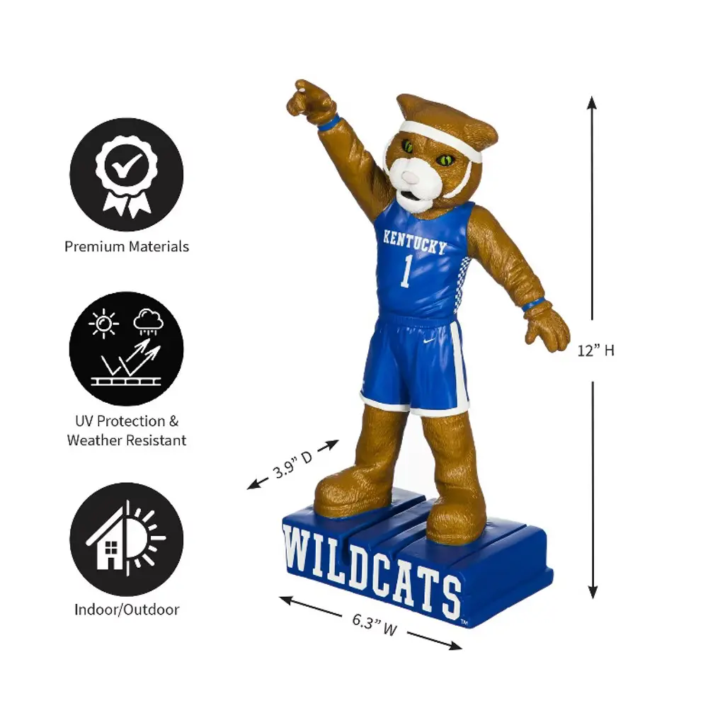 This licensed team Mascot Statue features the Kentucky mascot and team logo. It is crafted from polyresin and hand painted in team colors. Brown box packaging.