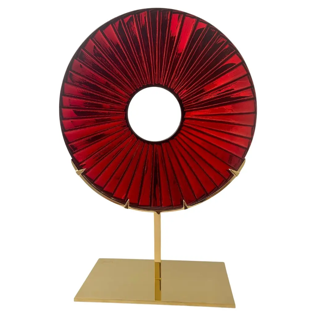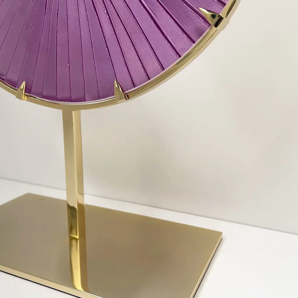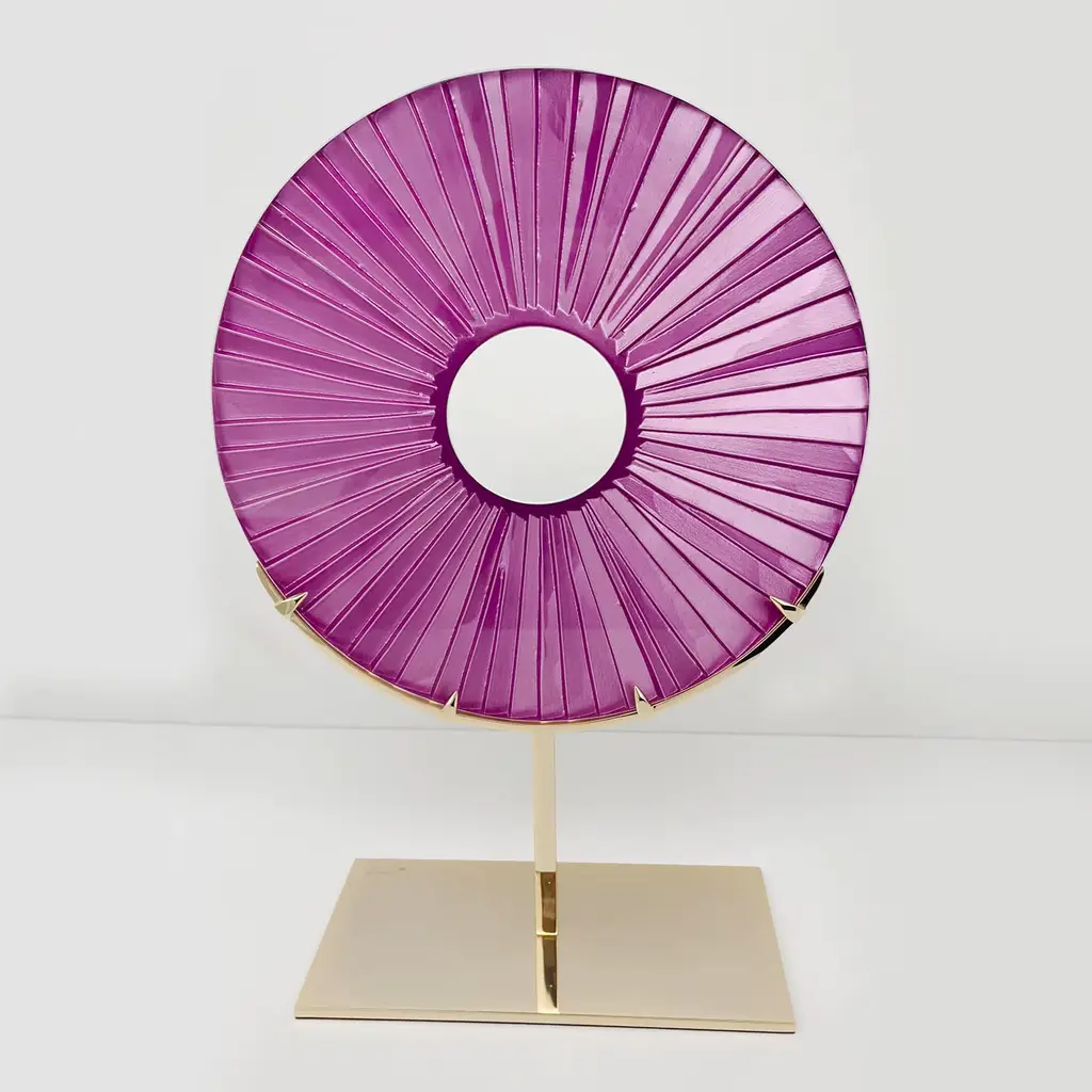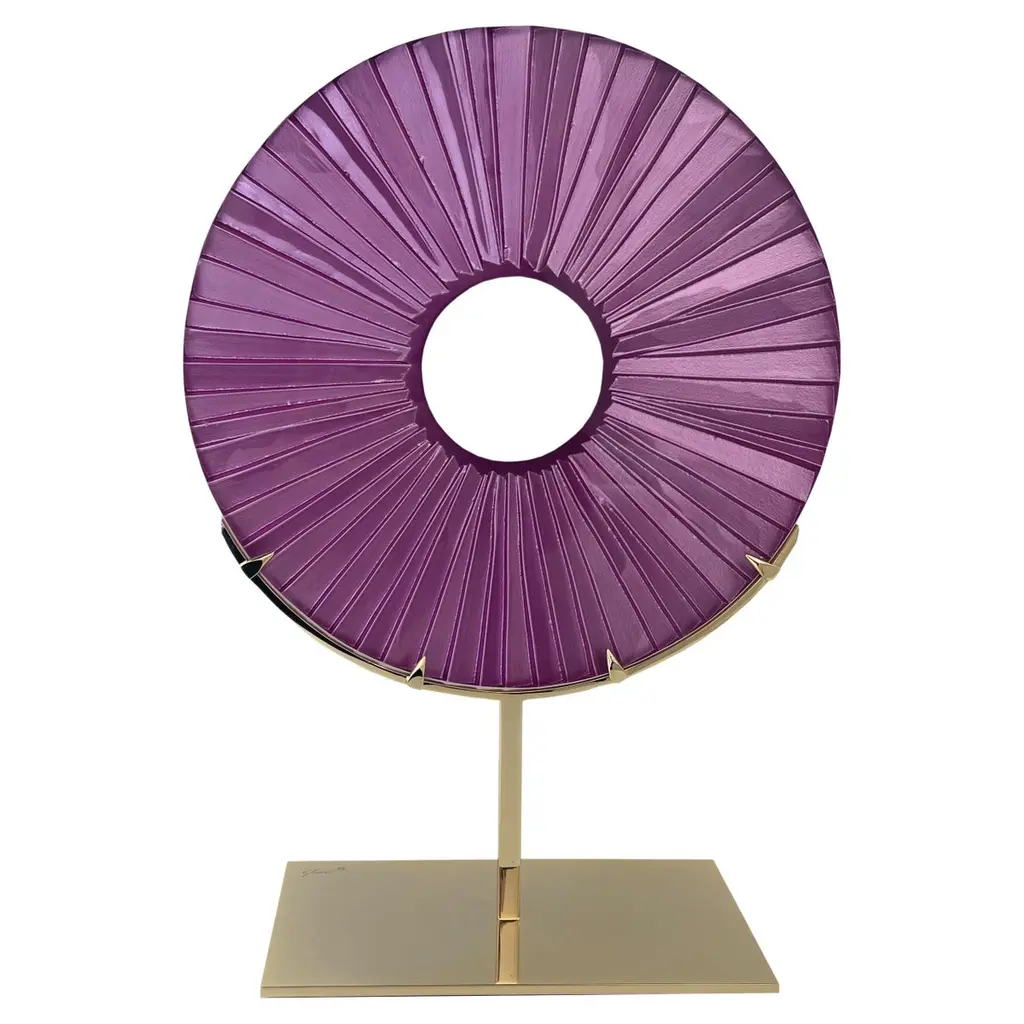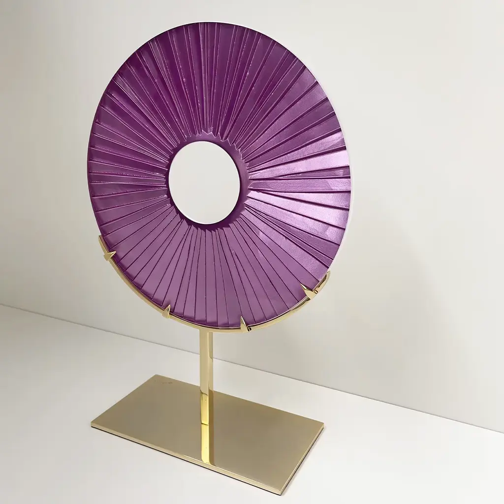 The 'Eye' is not only a luxury refined piece of furniture but it is also a hand-carved sculpture designed to embellish with uniqueness, beauty and charming any living area or bedroom. On the front, the crystal has a purple-colored finish with pearly reflections while on the back it has a matte white finish and it is possible to see and touch the depth of the engravings. Every imperfection is to be considered a guarantee of extreme naturalness and craftsmanship.