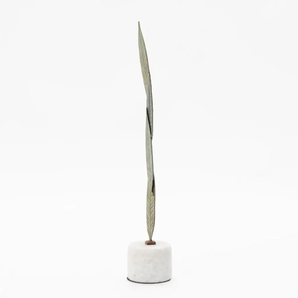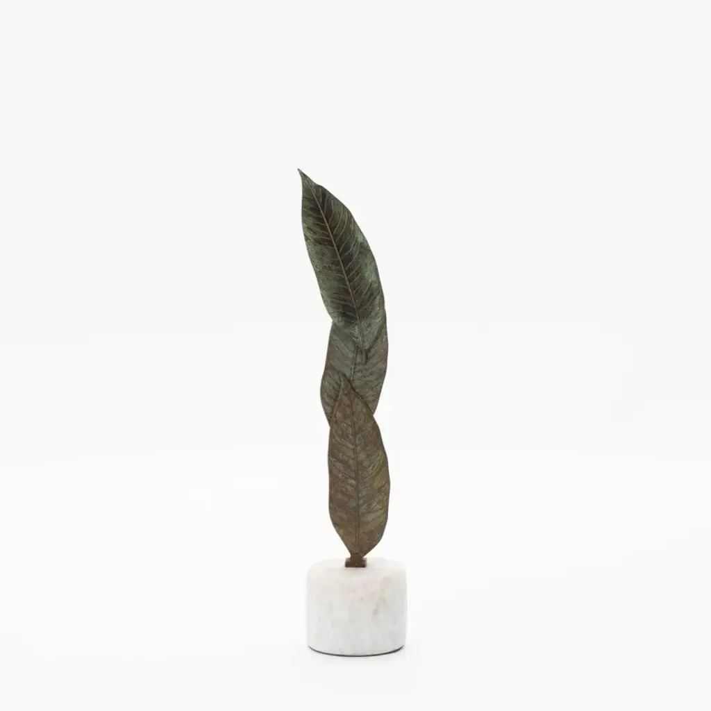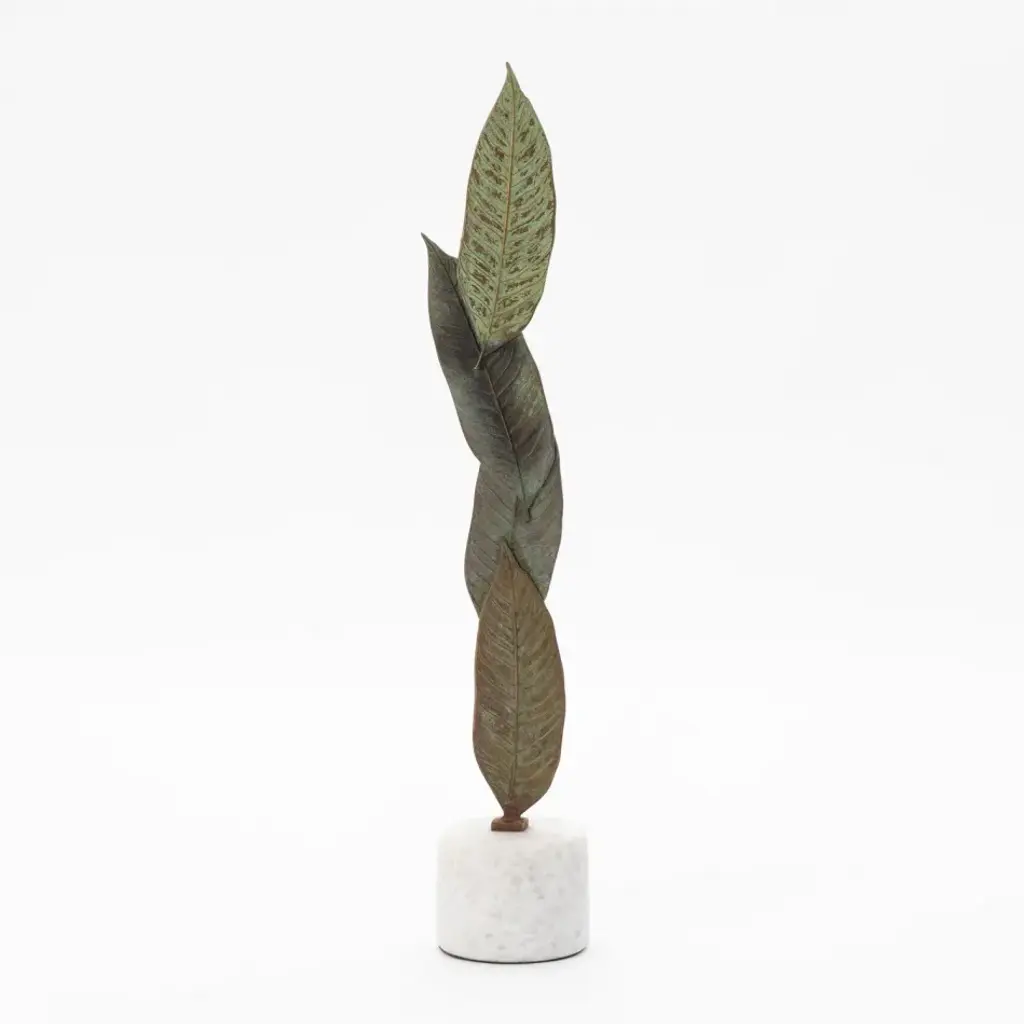 This sculptural collection composed of leaves evokes the seasons of the year. Leaves are positioned overlapping to create a tall sculpture atop a circular white marble base. Use individually or as a grouping, these will accessorize your room with the look of an art gallery. Sold individually and available in 3 sizes. From a fashion forward perspective, Global Views offers accessories, furniture, statement lighting, and an assortment of rugs and mirrors to add beauty and joy to your home.