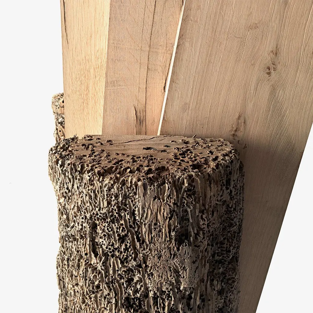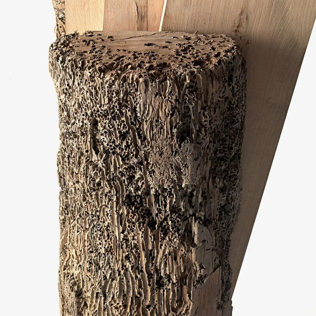 Sculpture fan raw oak all in solid raw oakfrom Venice canals columns. With iron base.