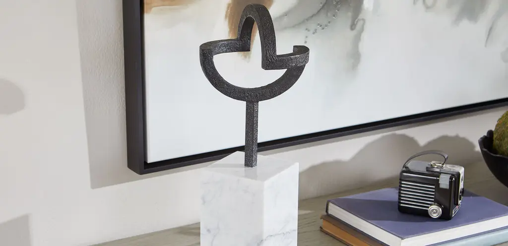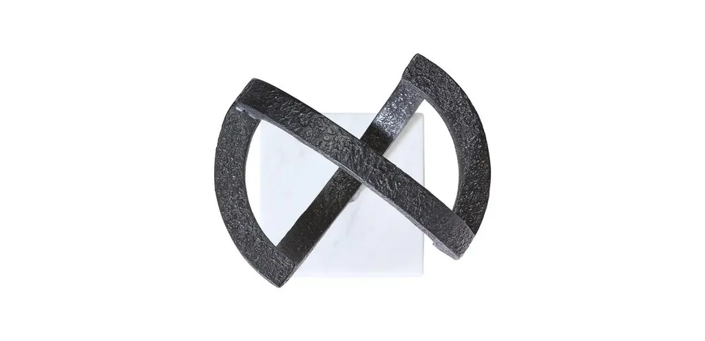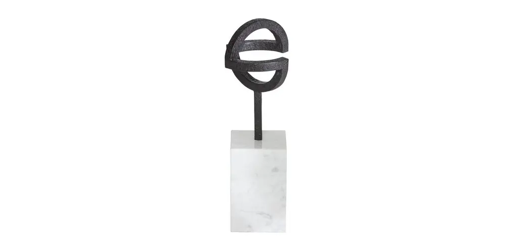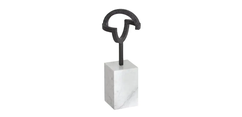 Our Felix modern sculpture is a bold abstract piece shaped from steel; its intriguing shape is meant to inspire all who observe it. Standing on a marble pedestal, it situates itself at the peak of any tablescape.