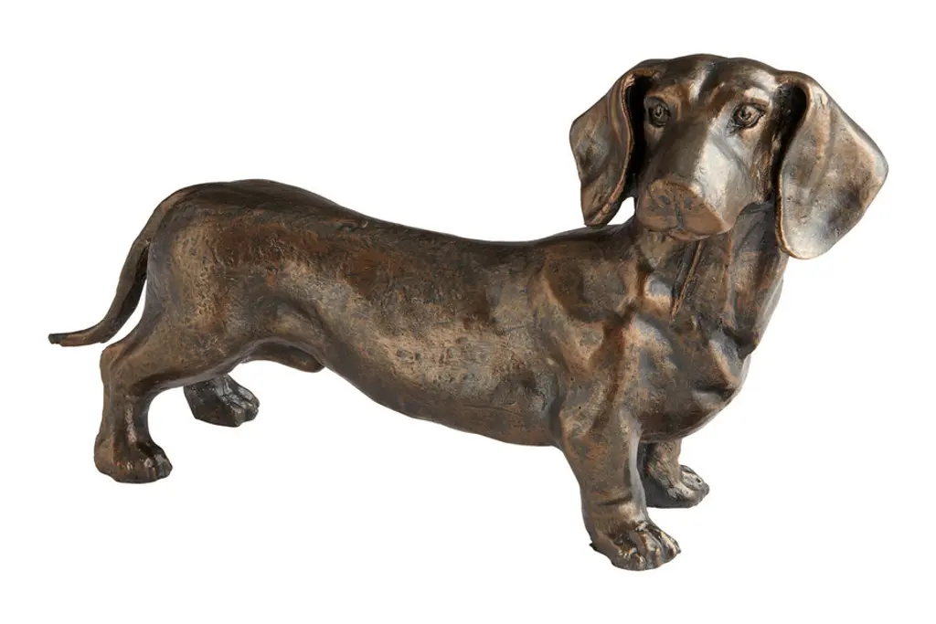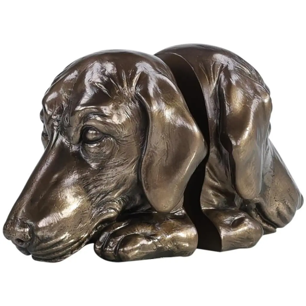 Classic and traditional, this Daschund sculpture brings a timeless inspiration to warm a rustic western or understated lodge influenced look. Deep burnished bronze emphasizes the detailed textures and features of this unique piece.