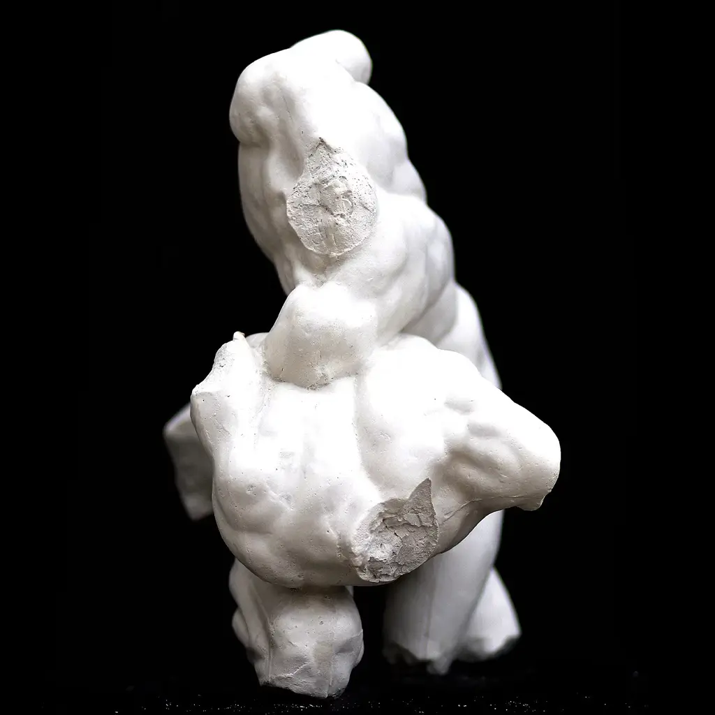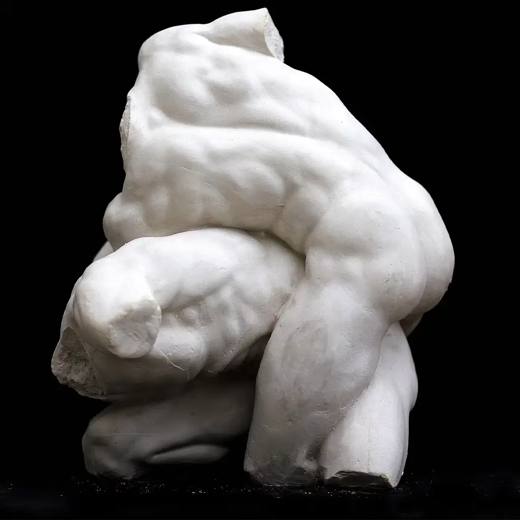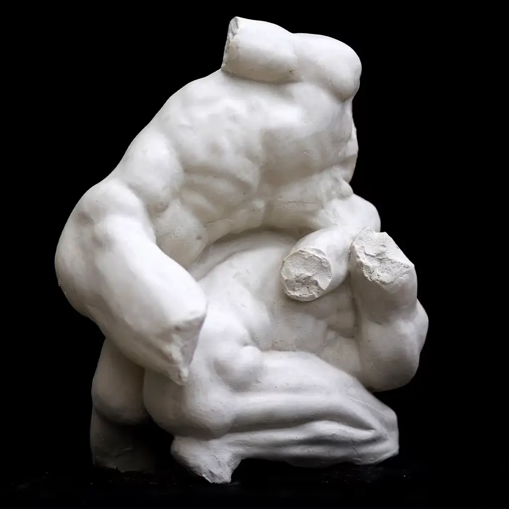 Exquisite small-scale reproduction of a famous Roman sculpture of Greek origin, once in the Medici collection and nowadays exhibited at the Uffizi Museums in Florence. The detail rendered here in plaster by the skilled sculptors of Florentine Galleria Romanelli depicts the truncated bodies of two fighters. The original cast is clearly visible on purpose, because stressing the creative process and the properties of plaster.