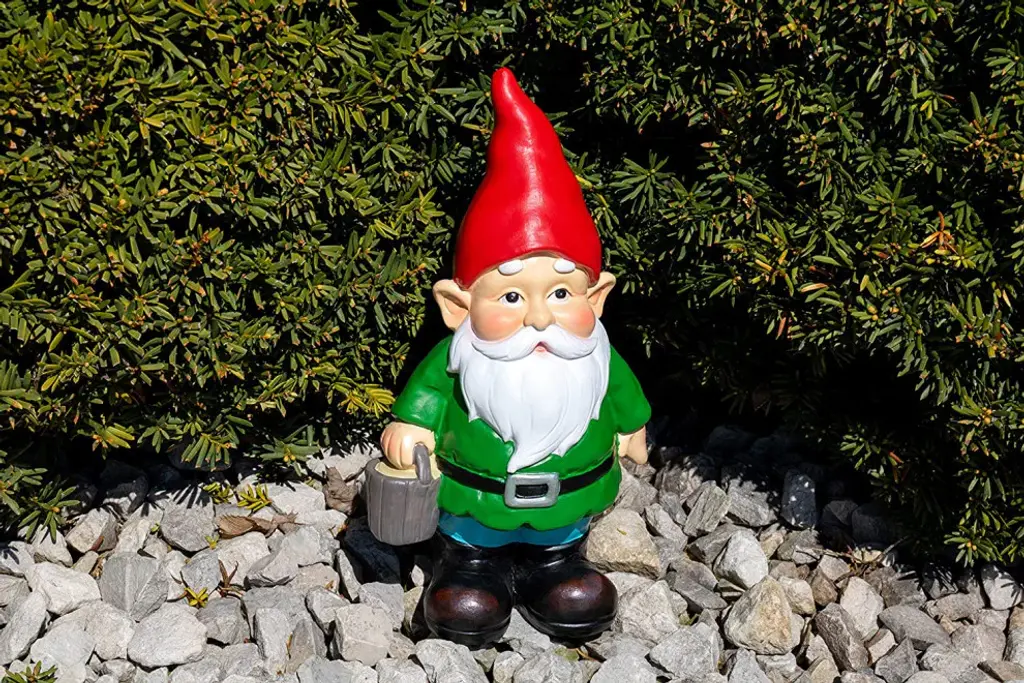 Features:- HIGH QUALITY DESIGN: Colorful handcrafted garden gnome with a classic look; weighs approximately 2 lbs, not too heavy to carry but not so light as to blow away in the elements; UV and water resistant- DURABLE YARD DECORATION: Made from high grade durable poly resin to weather the outdoors for years to come; display this garden gnome statue in your garden, lawn, patio, or even indoors- FOR OUTDOORS & INDOORS: Garden gnome statue is around 11 inches tall and fits any garden or shelf; watch guests smile as they discover your bearded friends- PERFECT GIFT IDEA: An excellent gift for friends & family; compact size makes it an excellent home & office decoration, while durable poly resin design makes it perfect for outdoors