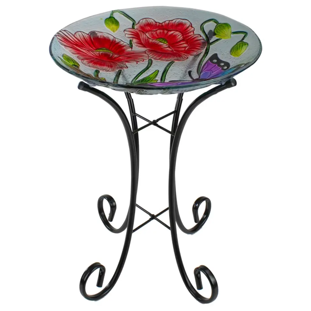 Elevate your indoor spaces with the Fiore Bloom 3 Plate Hand Blown Art Glass Sculpture, a harmonious blend of artistry and elegance. This captivating piece showcases three meticulously hand-blown glass plates, each 8" in diameter, in the mesmerizing hues of amber, aqua, and red. Together, they paint a picture of a vibrant bouquet of flowers, infusing any room with a touch of nature's charm. Each plate is intricately designed to mirror the beauty of a blooming flower, making it a conversation starter in any setting. Supported by a sleek metal stand, this sculpture seamlessly integrates into contemporary or classic interiors. Whether gracing a living room, entryway, or bedroom, the Fiore Bloom Sculpture stands as a testament to the beauty of handcrafted art. Let it be the centerpiece that brings warmth and wonder to your indoor sanctuary. Due to the nature of handcrafted art glass colors, sizes and patterns may vary slightly.