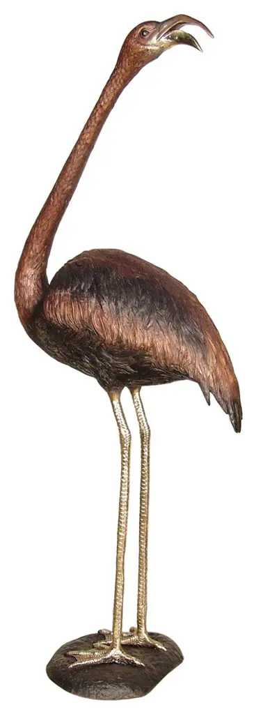 The "Flamingo Looking Down" finished in bronze patina is a great representation of this tropical bird. This is a fun sculpture to complement your landscape.
