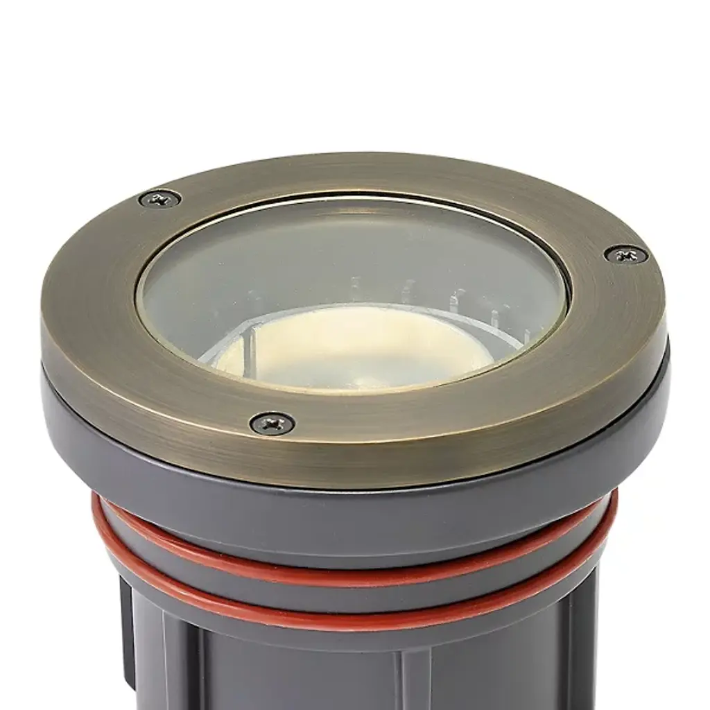 Nighttime drama in the yard. The Flat Top Well Light by Hinkley Lighting brings soft illumination to an outdoor space. Made from aluminum and featuring a clear lens, this piece is durably designed to withstand the elements. It's perfect for lighting up walkways, sculptures or trees. You can also line several along the edge of a driveway to brighten the way or border a patio to entertain in luminous style.