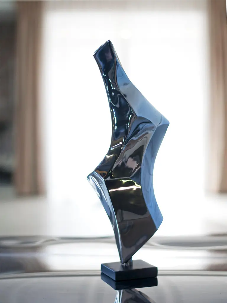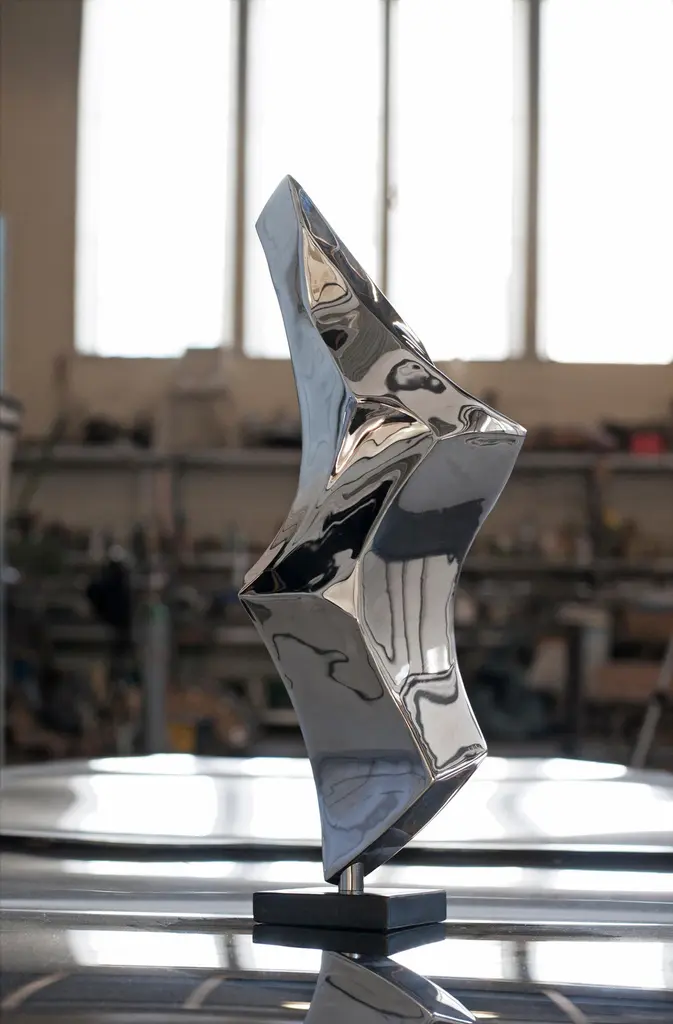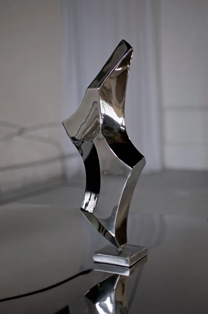 Flint VIII Sculpture by Pol Quadens Unique Piece.Dimensions: Ø 20 x H 40 cm.Materials: Polished stainless steel.Dimensions may vary. Please contact us.Pol Quadens was born in Brussels. His father was active in the fields of composites the metal industry, and the world of materials, therefore, surrounded Pol since his early childhood. After his artistic studies, he starts restoring vintage cars. This experience has allowed him to gain strong practical skills and a deep knowledge of all materials.In 1987, he made his first creations and production of objects. His sensitivity and passion for the arts led him to create functional artworks. His CD shelf has sold more than 100,000 pieces and has become iconic in its category.