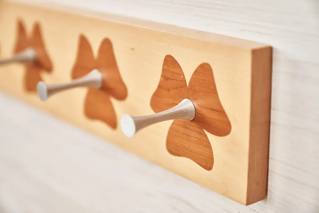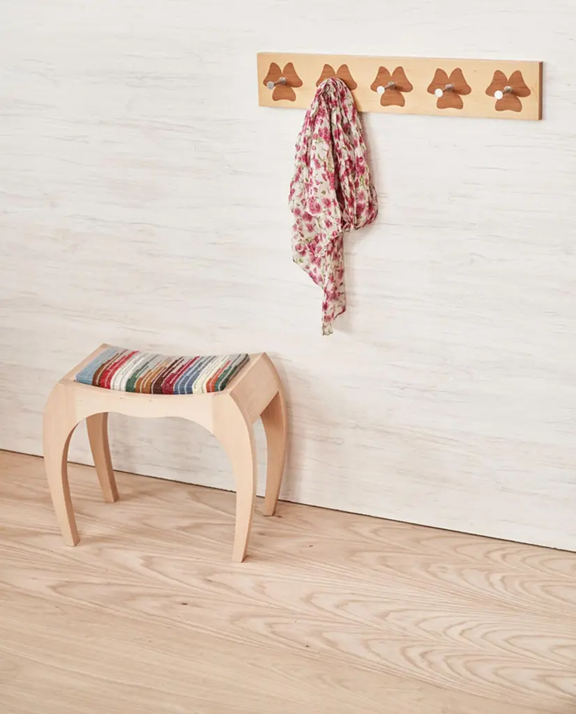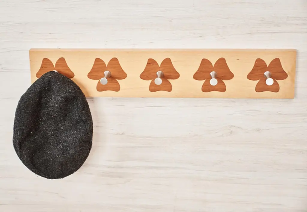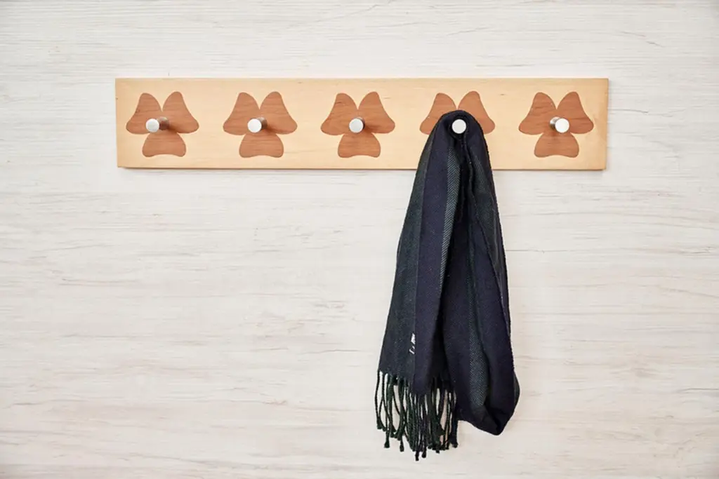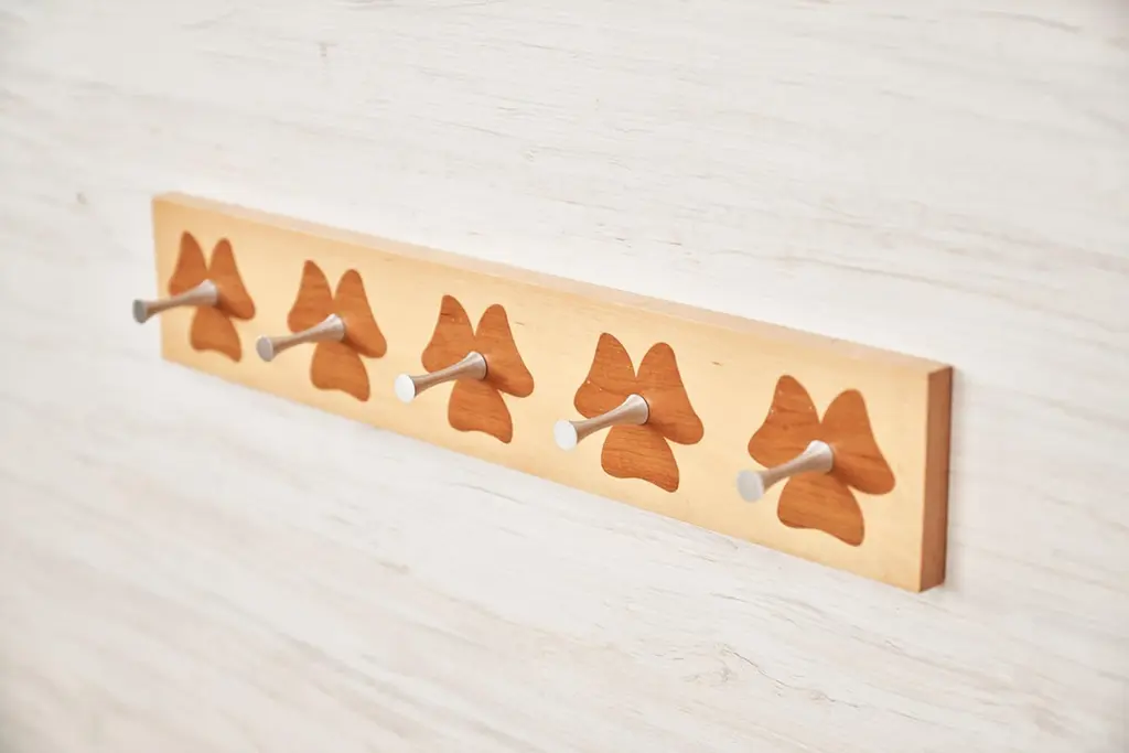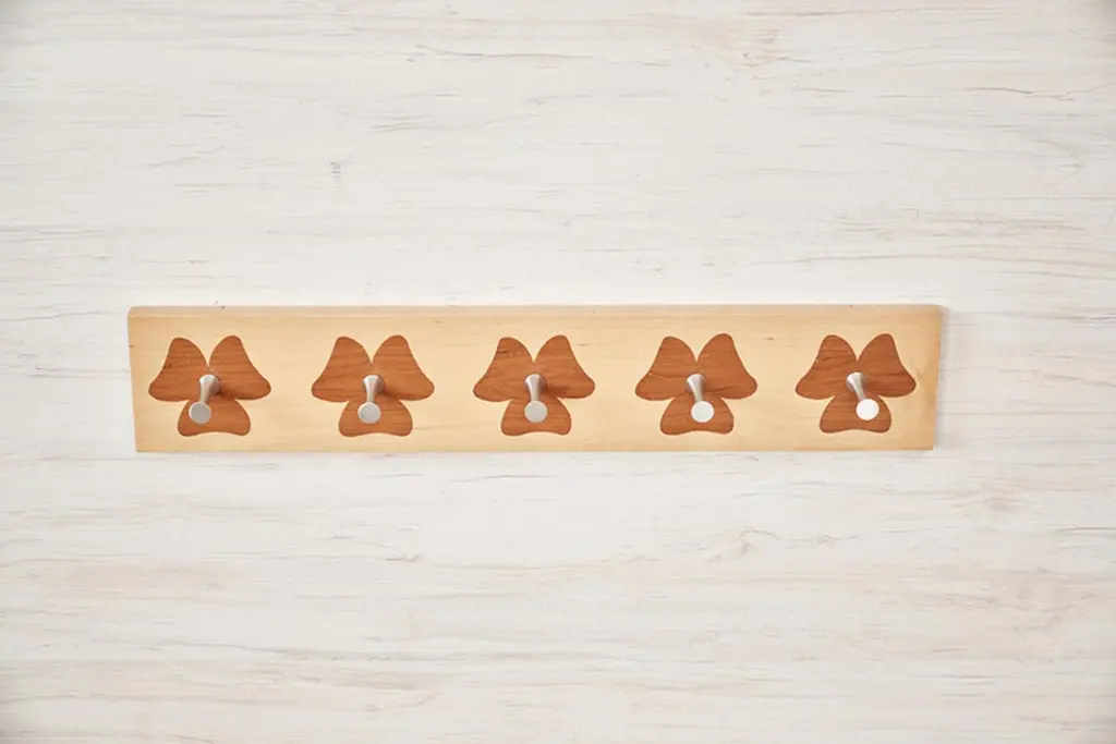 Flower Rack by Jean-Baptiste Van den HeedeDimensions: W 69 x D 9 x H 12 cmMaterials: Cherry, Maple, Aluminum.Also available: Other sizes can be made to order,This coat rack is made in maple and cherry marquetry with aluminum handles.Jean-Baptiste Van den Heede defines himself as a cabinetmaker-designer and an artist of academic training and family tradition. He has achieved unique designs of national and international prestige and has several awards in avant-garde furniture.Born in Argentina in 1966, from an Argentine mother and a Belgian father. At 5 years of age he and his family moved to Belgium.To train as a wood professional, he first studied 4 years of carpentry. Then he continued training in cabinetmaking and carving for 5 more years. Always in search of contributing something more to his trade, he studied furniture and antique design, culminating this with the study of Sculpture at the Royal Academies of Fine Arts in Liège (Belgium) and graduating with honors.Work the stone, the wood and experience the forge. From the beginning it is directed towards a search for signs, abstract writings and unrealistic figures in analogy with other “Primitive” cultures. He taught drawing and sculpture in Brussels at the private school “la main et l´ esprit” As well as summer courses in Liege (Belgium) “les ateliers d´art contemporain”.In 1995 he went to Barcelona where he taught and investigated the reliefs of different supports such as trees, floors, and especially sewer covers.He searched again analogies between current art and Prehistoric, African art, etc.Participated in several exhibitions both at the artistic level and avant-garde design.In 2002, he moved down to Albacete and then to a town in the province where he still works.It is defined as “a search engine without haste or guidelines.” He says: “I only work when I feel a strong and positive inspiration invade me, an energy that I capture from matter, from the air and that I return doing the work until I feel a connection with it.”Private workshop of contemporary art in Letur (Albacete) until 2009.He currently works in his workshop-studio in the Sierra de Madrid (Guadalix de la Sierra) following his career as a cabinetmaker-designer and artist while teaching his trade to students interested in wood.