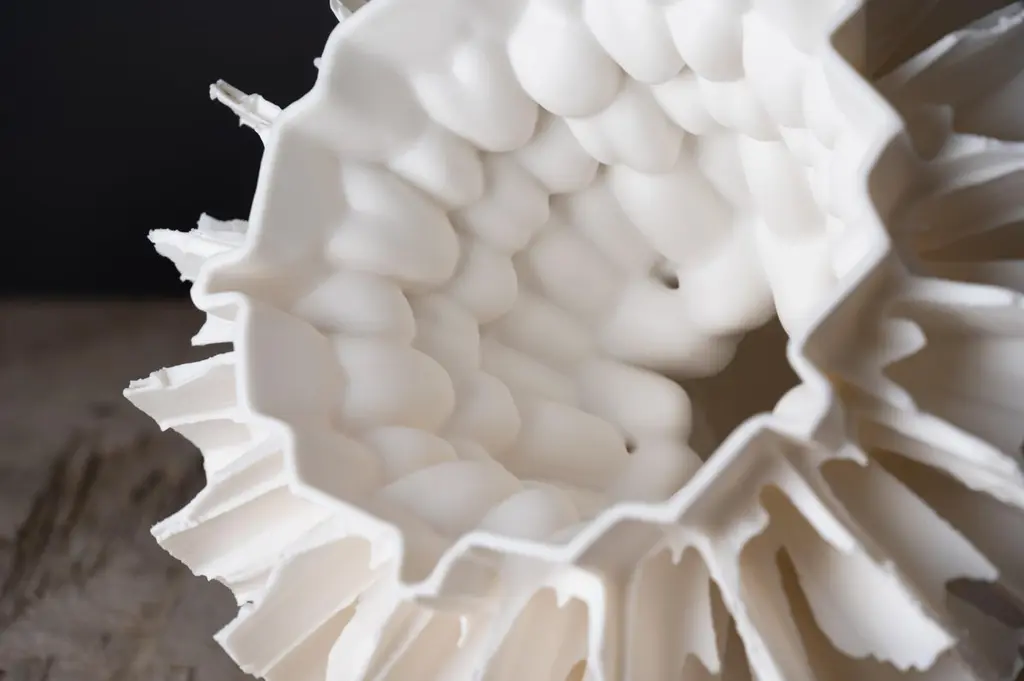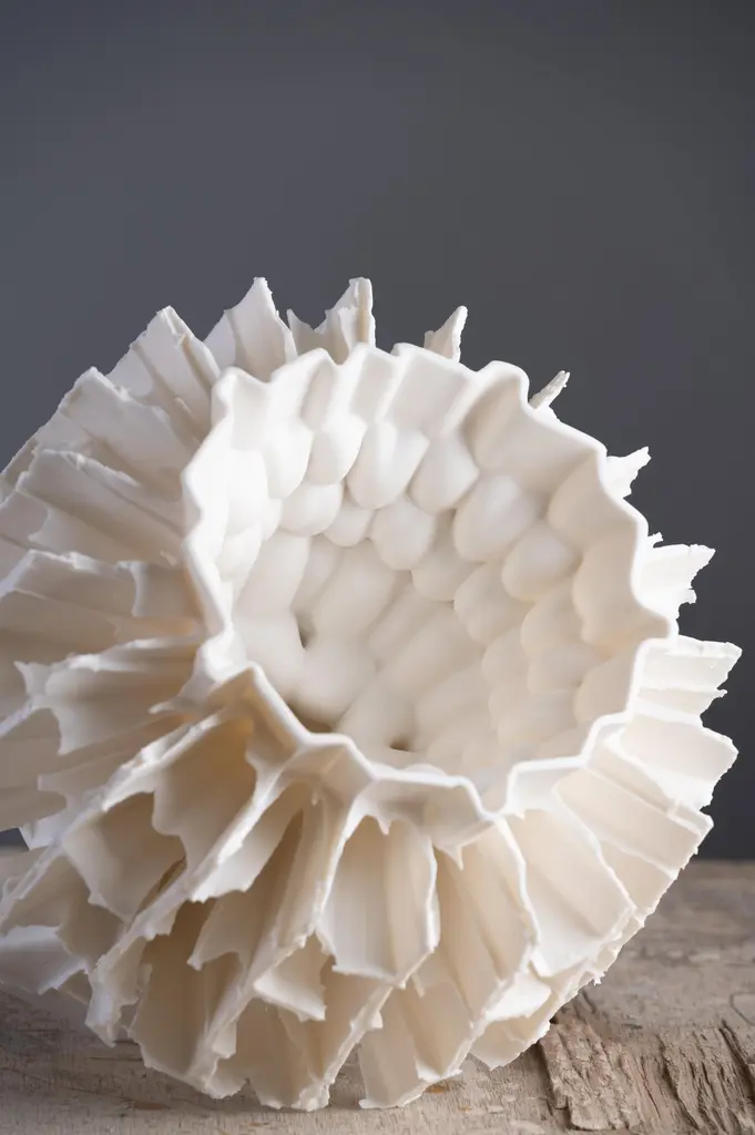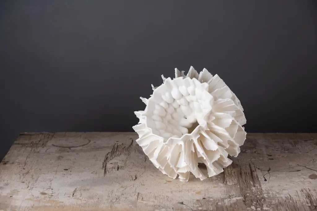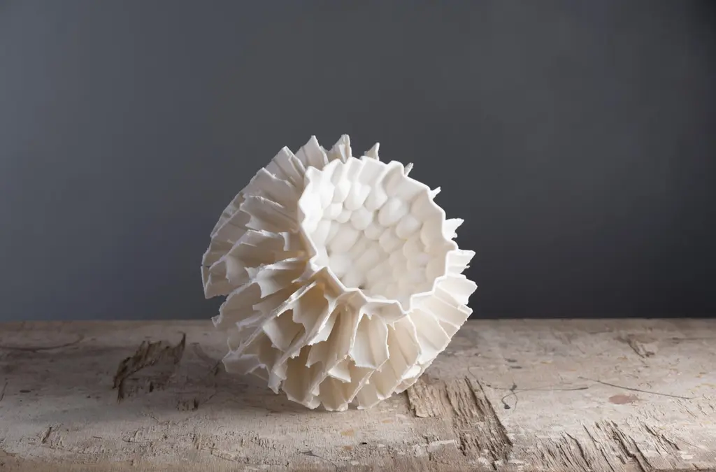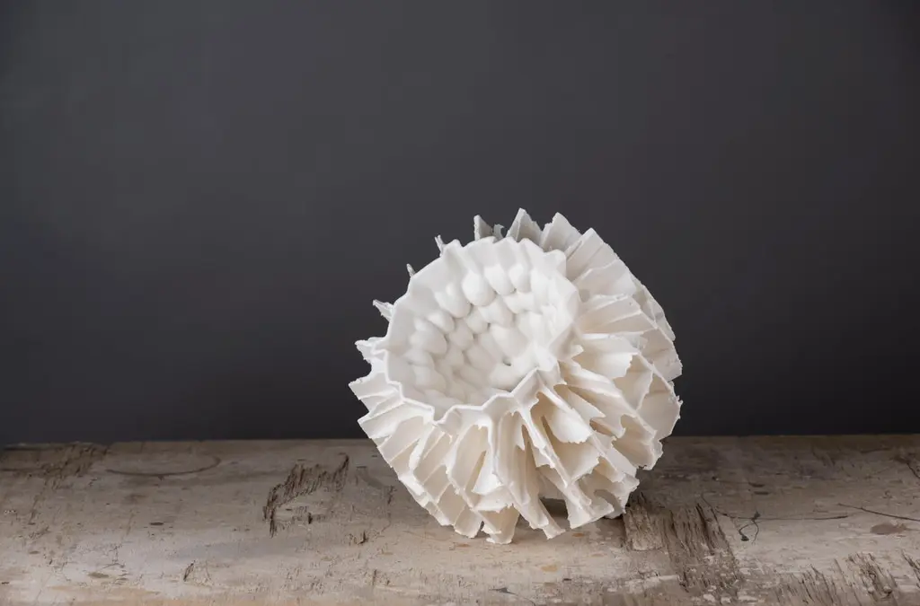 Flying Garden Series Sculpture by Zsolt József SimonDimensions: W 26 x D 26 x H 24 cmMaterials: Porcelain.Zsolt József Simon is a porcelain designer based in Pécs, Hungary. Most of their works are sculptural pieces inspired by ancient art and nature, created for a contemporary audience.