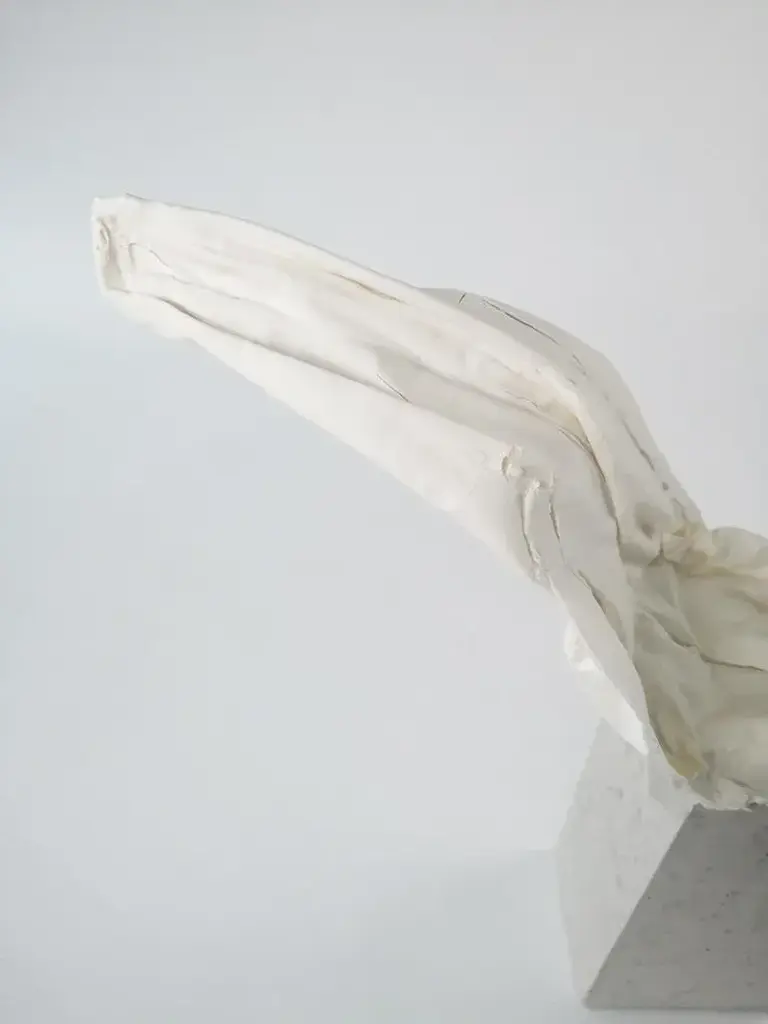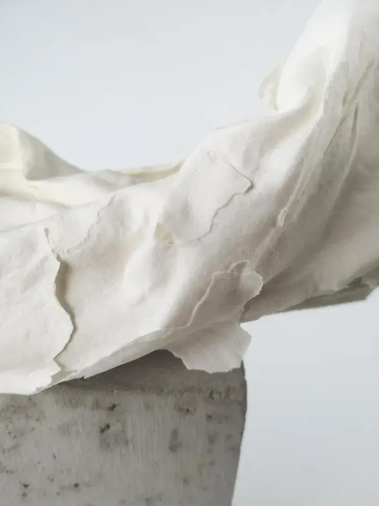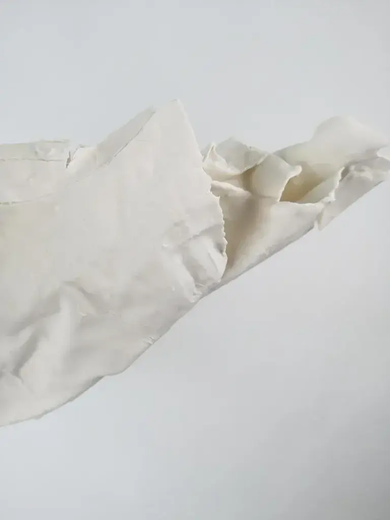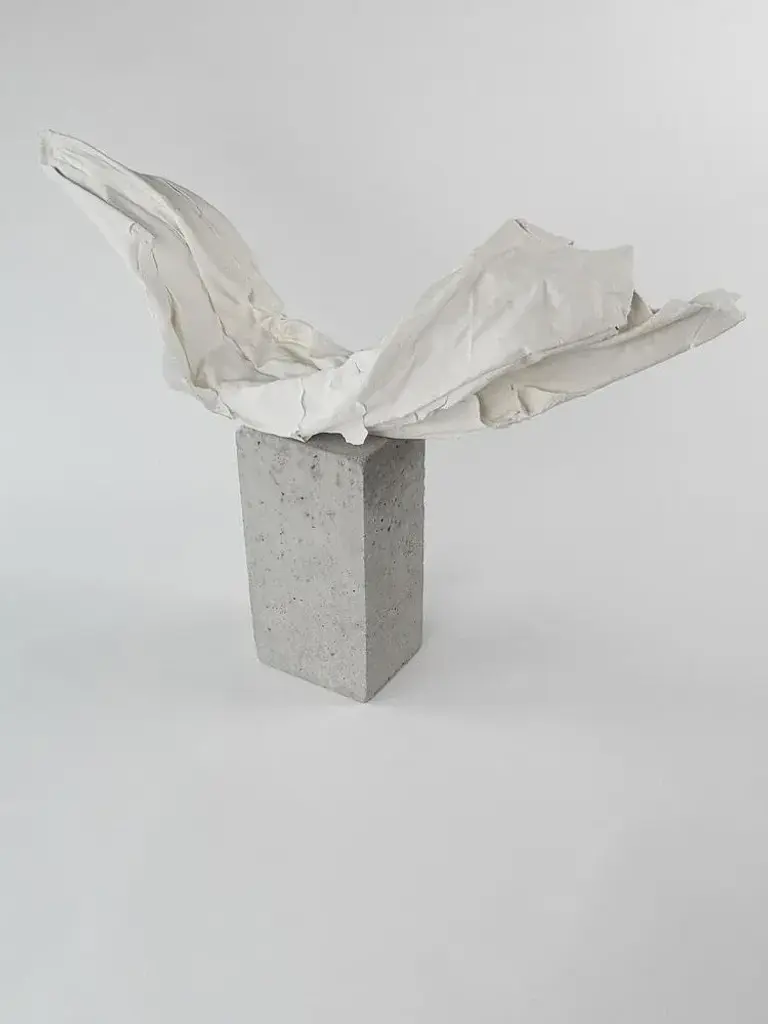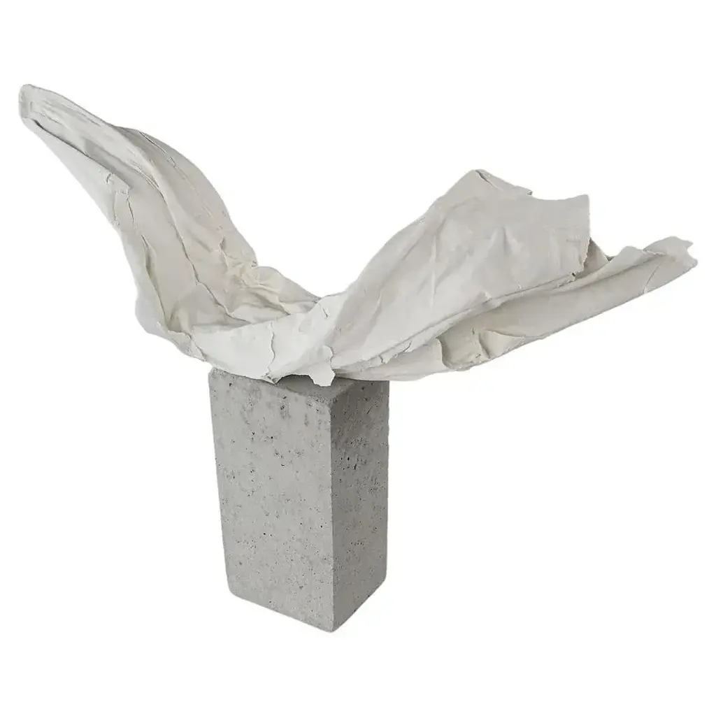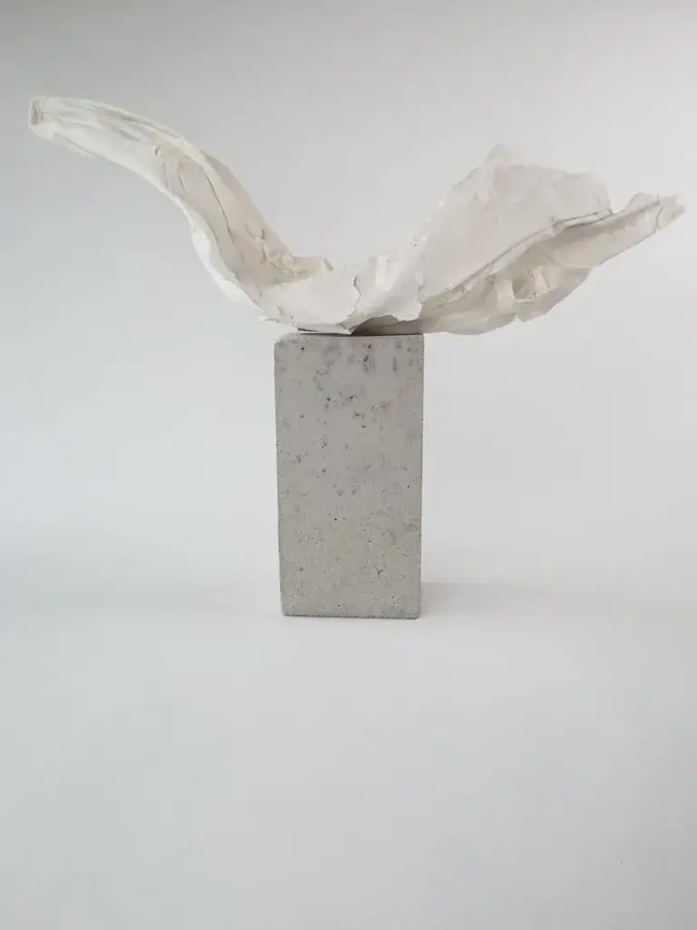 Fold i sculpture by dora stanczel one of a kind. Dimensions: d 15 x w 50 x h 37 cm. Materials: porcelain and beton pedestal. I create bespoke and luxurious porcelain pieces with a careful aesthetic. Beyond the technical mastery of casting, what interests me is the unexpected imperfection that occurs during the creative process. I like to make it a focal point of my pieces. For me, the intelligence of the hand lies in the collaboration with the material and not in its control. My pieces are the fruit of long experiments where technical processes are diverted. I obtain the harmony of forms by constantly seeking the limit of the material of the porcelain. I tear, fold, deform, glue, drip porcelain in a specific way that reveals the fragility and strength of the material. Indeed, a piece gains its strength through its final firing where the previously fragile material will finally be revealed. The beauty is in this transformation by the fire! my unique and stunning artworks are influenced by waves, curves and colors that i see when i go out on the ocean on my boat. This natural force and ecosystem essential to life is my source of inspiration. I consciously develop a vocabulary of forms based on the errors and the unexpected of this process. To obtain a unique piece, i divert the technical process of porcelain.