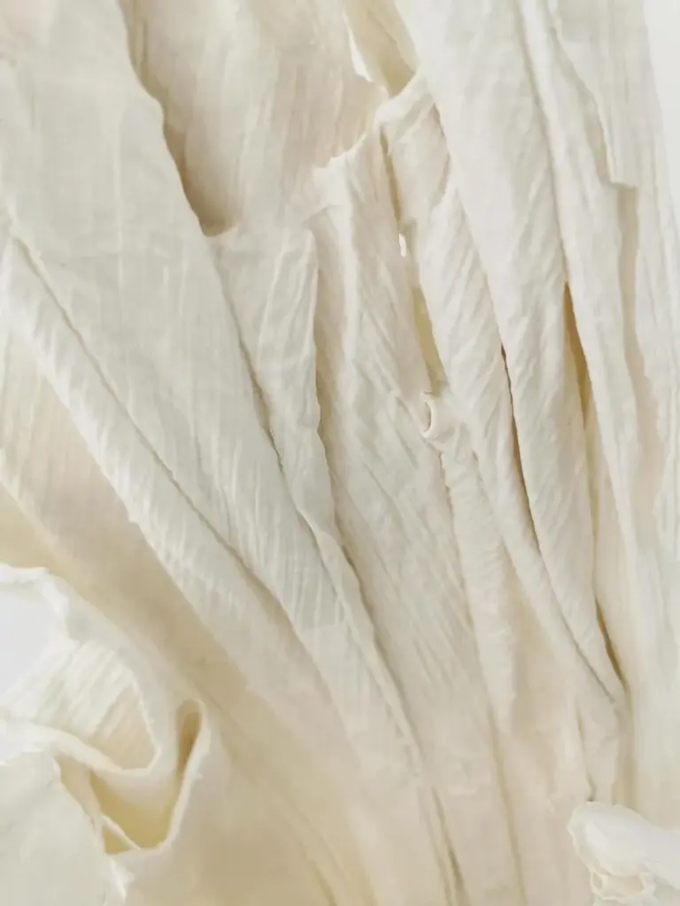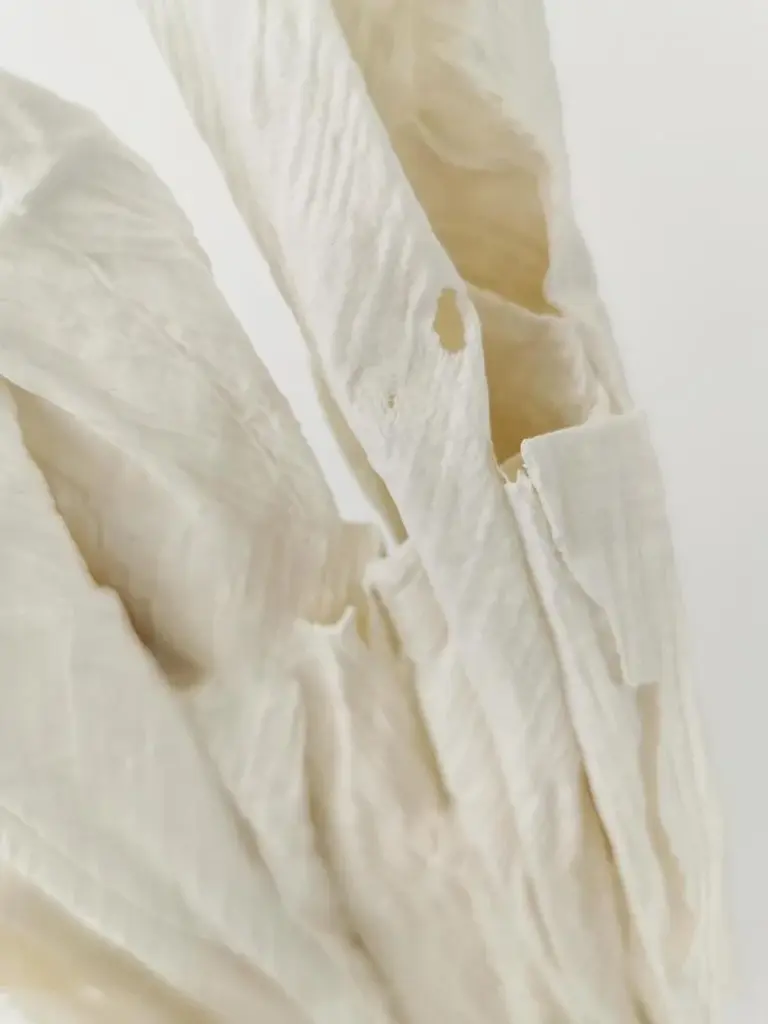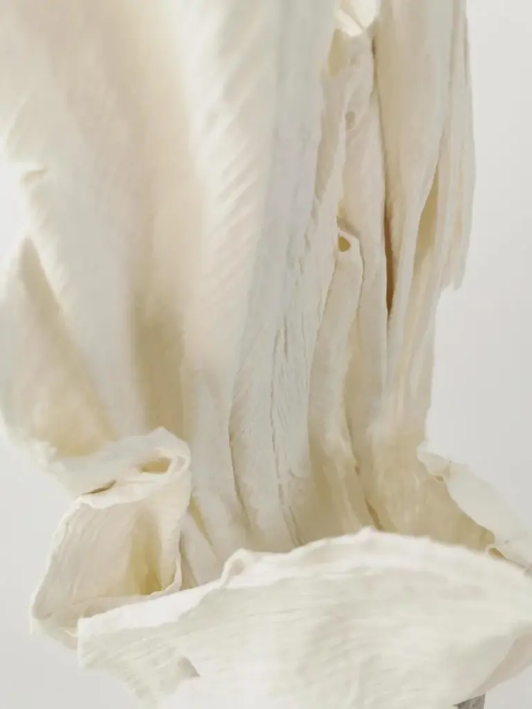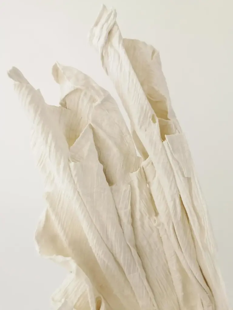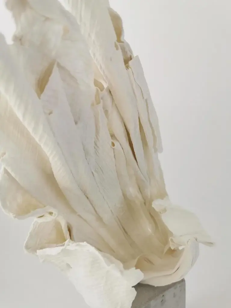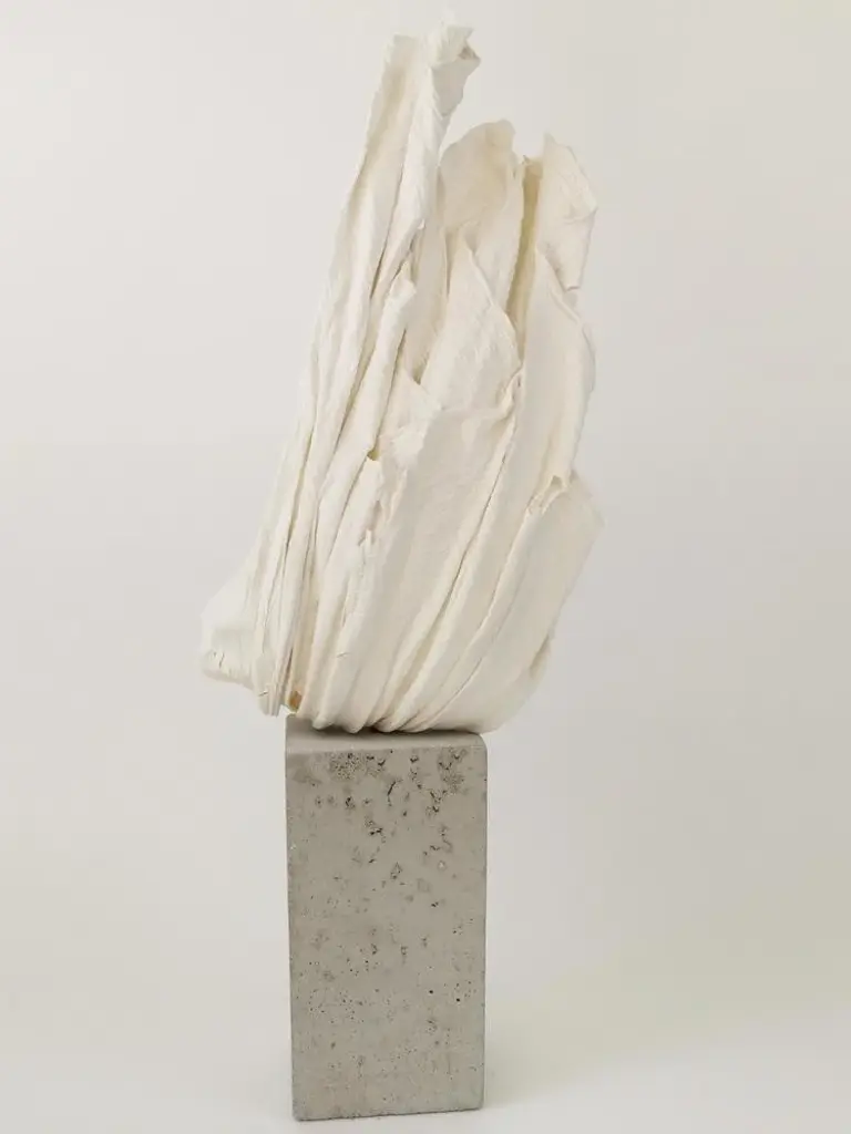 Fold ii sculpture by dora stanczel one of a kind. Dimensions: d 18 x w 19 x h 59 cm. Materials: porcelain and beton pedestal. I create bespoke and luxurious porcelain pieces with a careful aesthetic. Beyond the technical mastery of casting, what interests me is the unexpected imperfection that occurs during the creative process. I like to make it a focal point of my pieces. For me, the intelligence of the hand lies in the collaboration with the material and not in its control. My pieces are the fruit of long experiments where technical processes are diverted. I obtain the harmony of forms by constantly seeking the limit of the material of the porcelain. I tear, fold, deform, glue, drip porcelain in a specific way that reveals the fragility and strength of the material. Indeed, a piece gains its strength through its final firing where the previously fragile material will finally be revealed. The beauty is in this transformation by the fire! my unique and stunning artworks are influenced by waves, curves and colors that i see when i go out on the ocean on my boat. This natural force and ecosystem essential to life is my source of inspiration. I consciously develop a vocabulary of forms based on the errors and the unexpected of this process. To obtain a unique piece, i divert the technical process of porcelain.