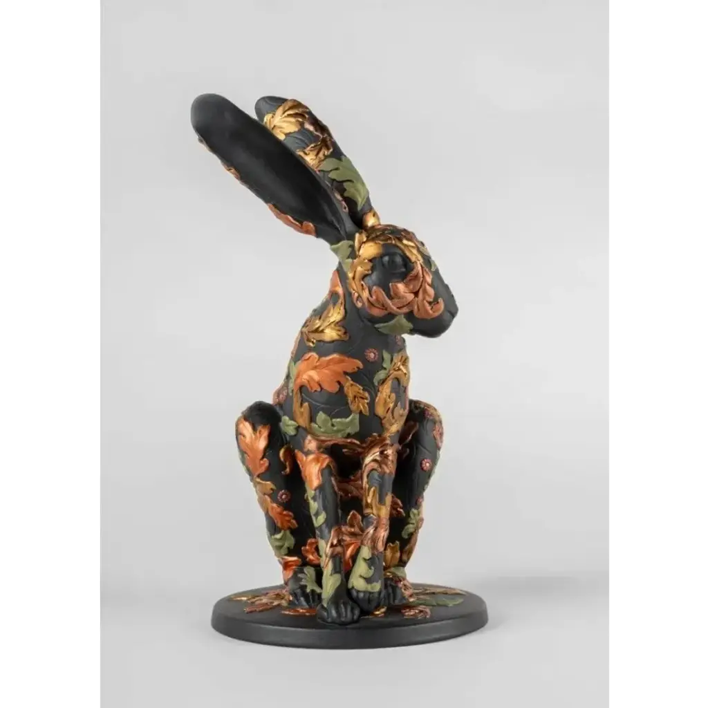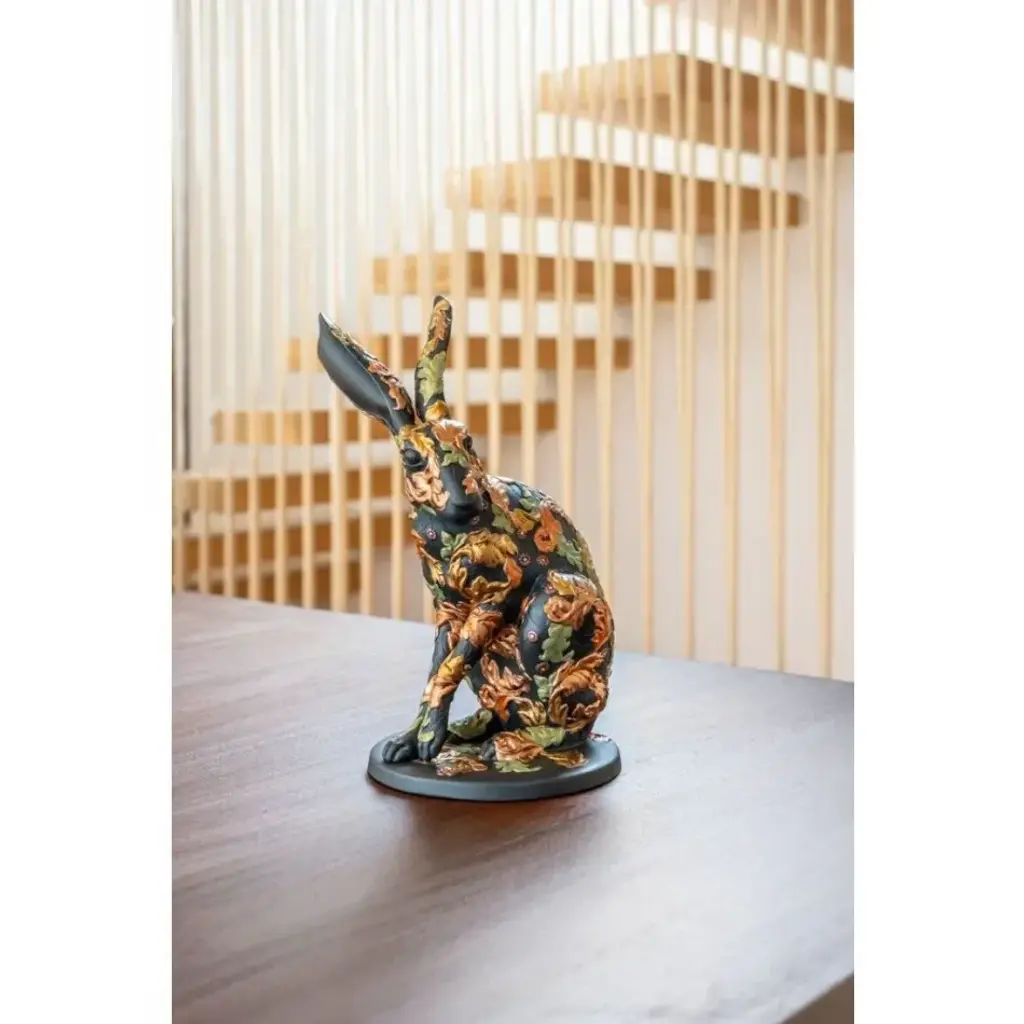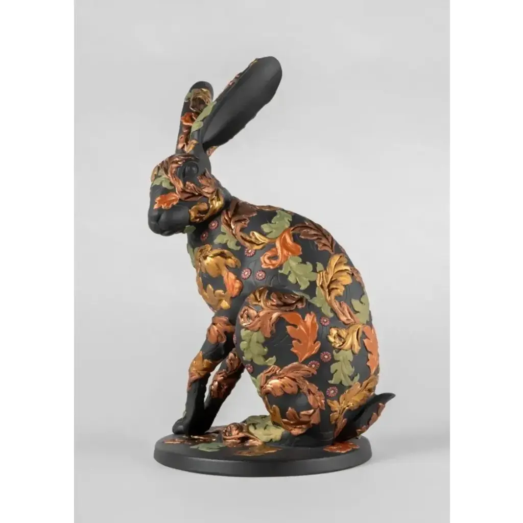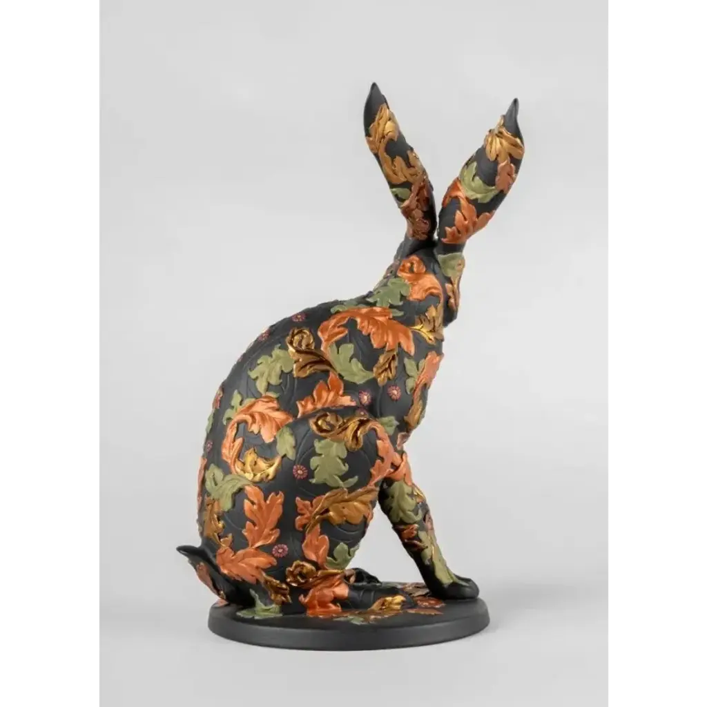 Porcelain sculpture depicting a hare, inspired by the plant motifs of the designer William Morris, one of the all-time masters of the decorative arts. An iconic Spanish brand, Lladro is a world leader in the creation of porcelain art. Started by brothers Juan, Jose and Vicente Lladro in 1953, the ceramic figurines were initially inspired by the works of great European manufacturers like Meissen and Sevres. Over time, a unique style was forged, consisting of elongated lines, a revolutionary single-firing method, and soft pastel tones.