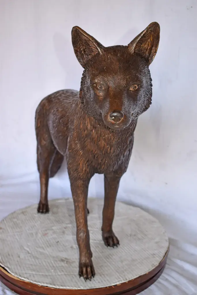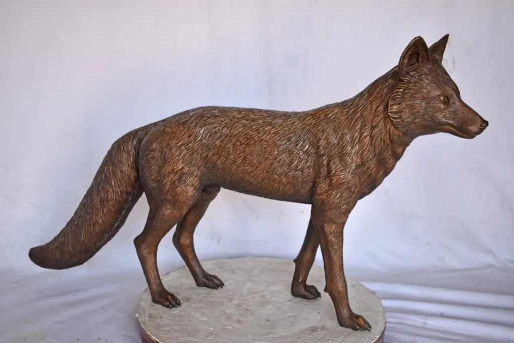 Fox Standing Life Size Bronze Statue - Size: 42"l X 9"w X 27"h.