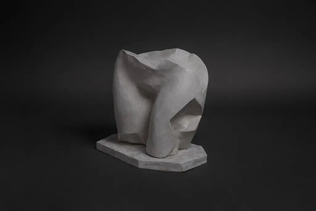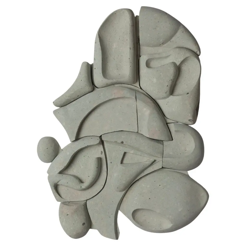 In continuity with her signature explorations of the female form, Marcela Cure introduces a new sculptural memento that sheds light upon the mulling yet beauteous intricacies in womanhood. Through hand-sculpted and hand-cast fragment, Cure unambiguously references the anatomical considerations of the Italian renaissance whilst recurring to more deliberate geometries. The figure is an assembly -the stacking together of three individual and removable stone fixtures on a sole stone axis- and not unlike womanhood, it is multidimensional and of intangible severity. A reminder of romance in complexity and poetry in resilience.