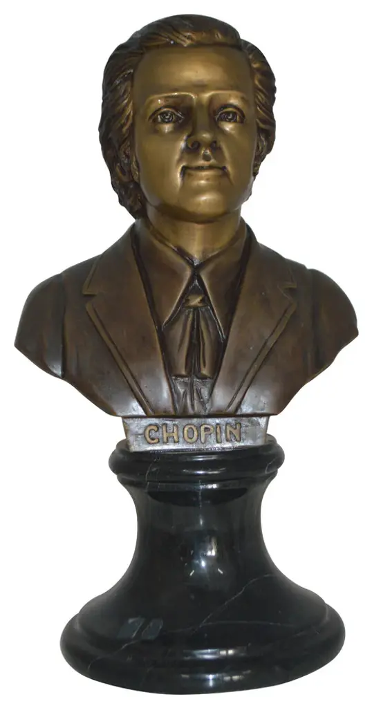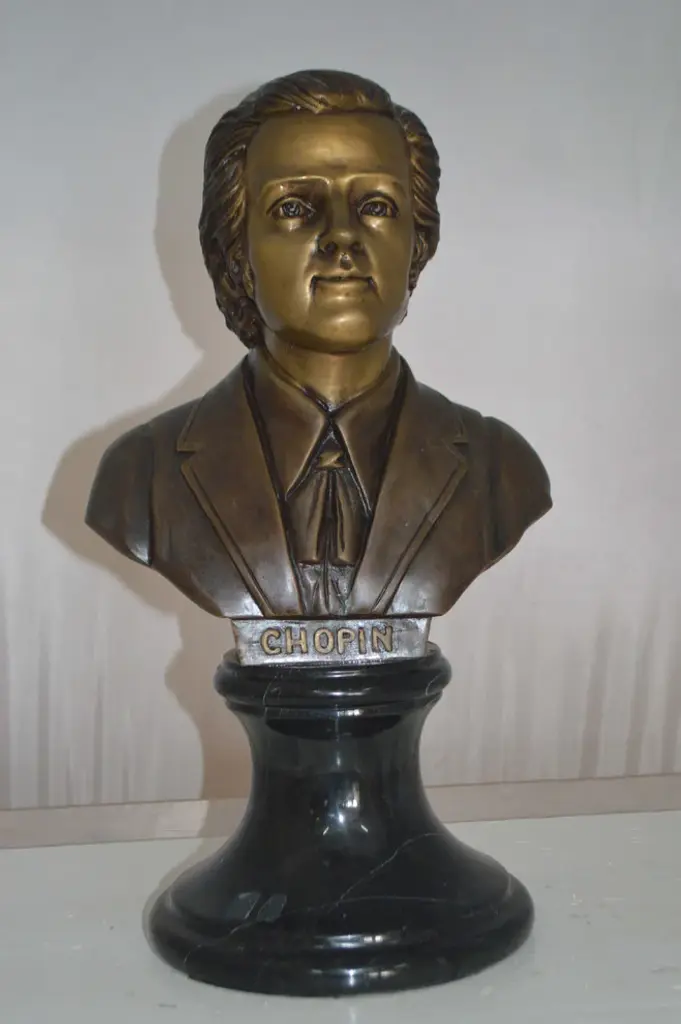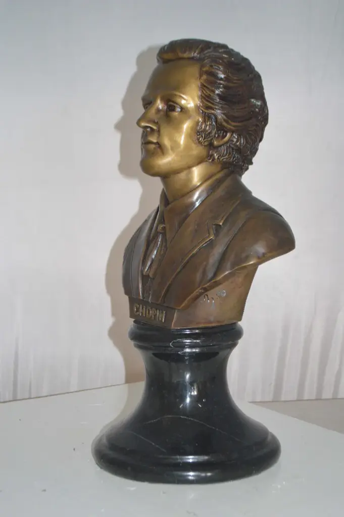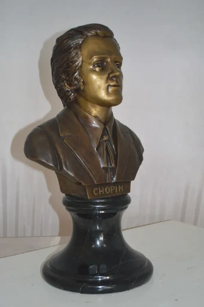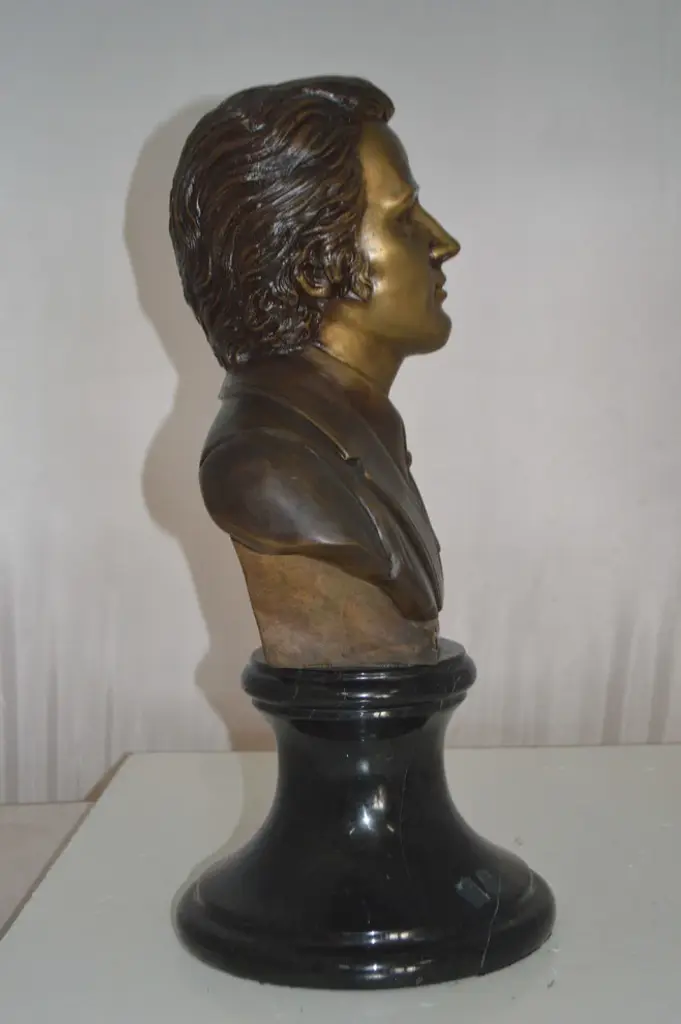 Frederic Francois Chopin Bust Bronze Statue - Size: 12"l X 8"w X 21"h.