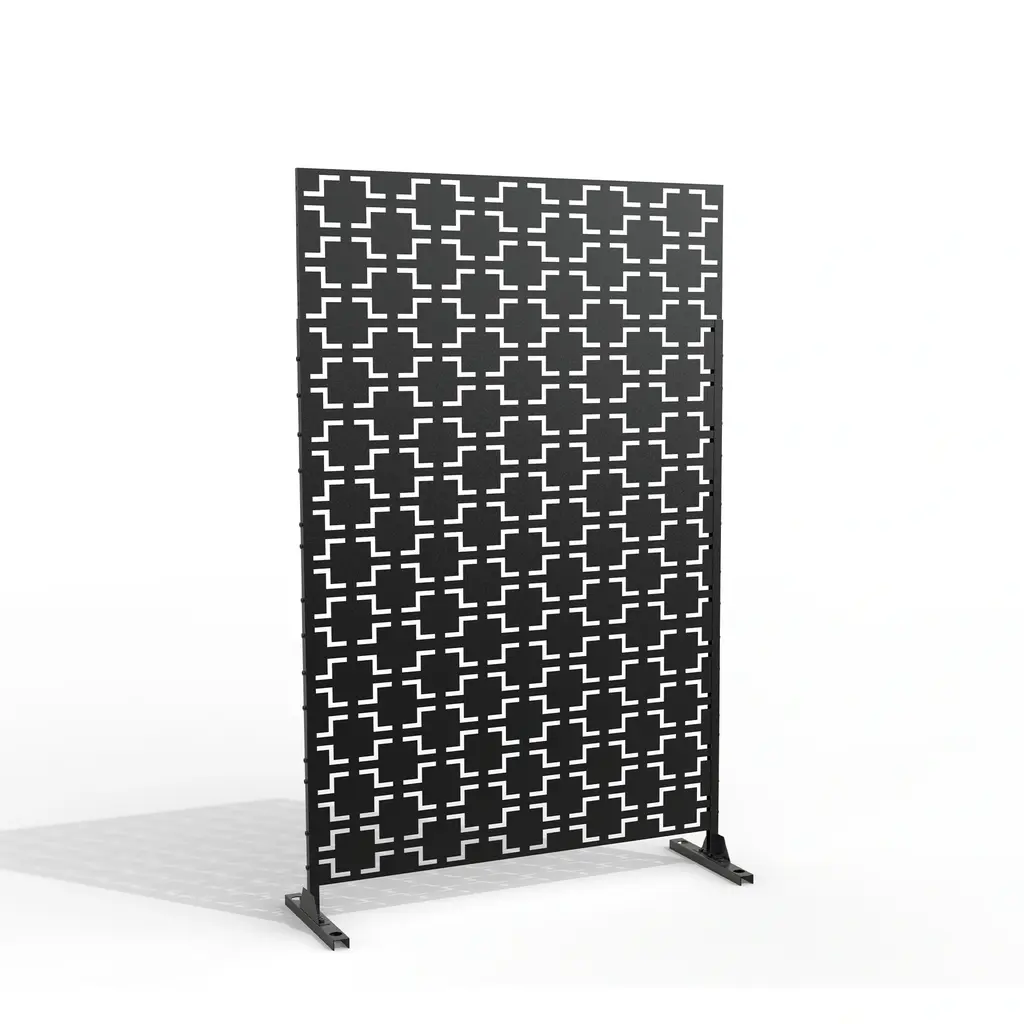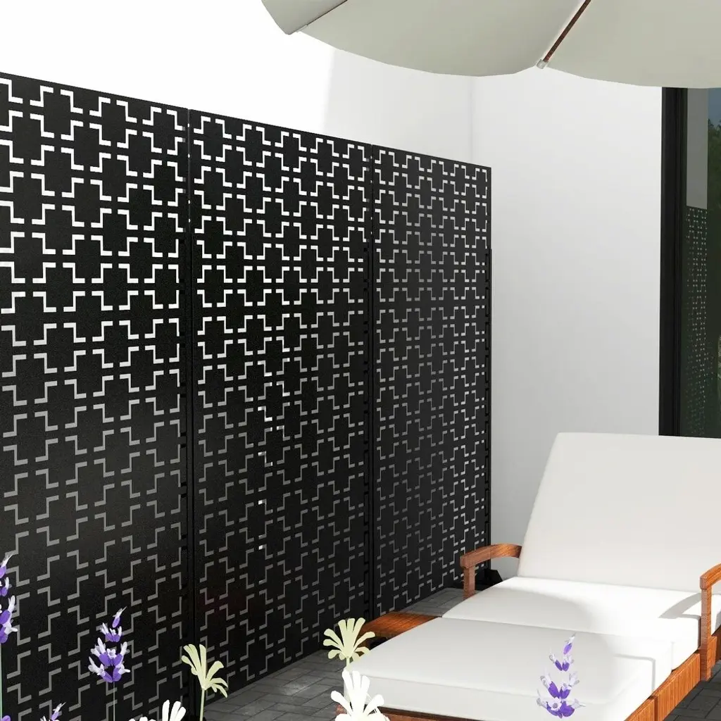 Add a touch of elegance and privacy to your outdoor space with this Metal Privacy Screen. The modern yet versatile design of Uixe Screens is inspired by traditional geometric patterns from around the world, making it an attractive addition to any patio or garden decor. This decorative paneled screen is perfect for hiding unsightly neighbors' backyards, blocking unwanted direct sunlight, creating privacy, or framing an outdoor room. Crafted from 2mm galvanized steel and coated with robust and scratch-resistant powder, this quadra black privacy screen is durable and sturdy.Features:Additional Information: