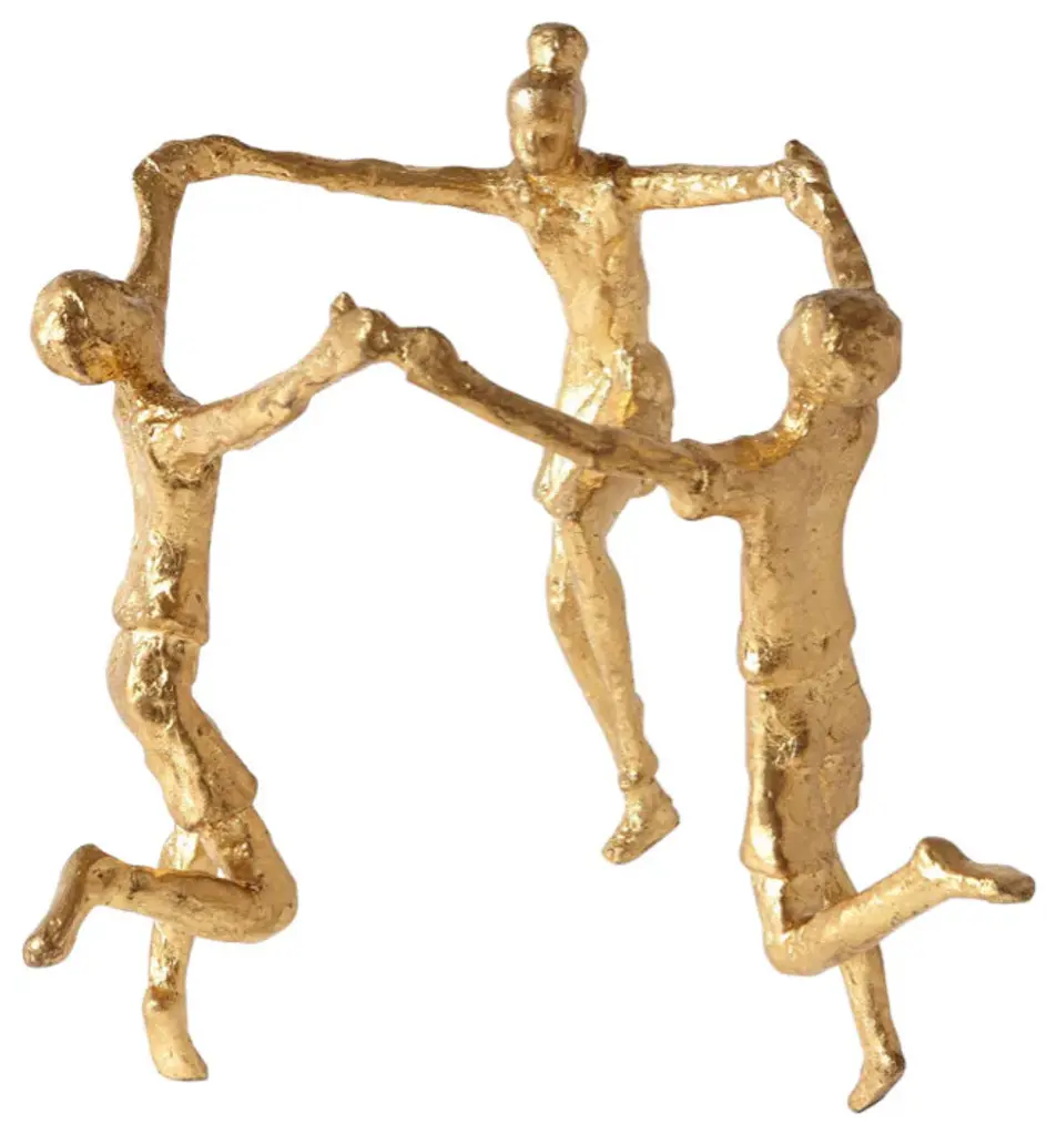 Let the good times roll and celebrate the freedom of humanity with this charming metal sculpture. Featuring a pair of friends caught in celebration, the sculpture presents a lively and joyful energy to enhance any room.