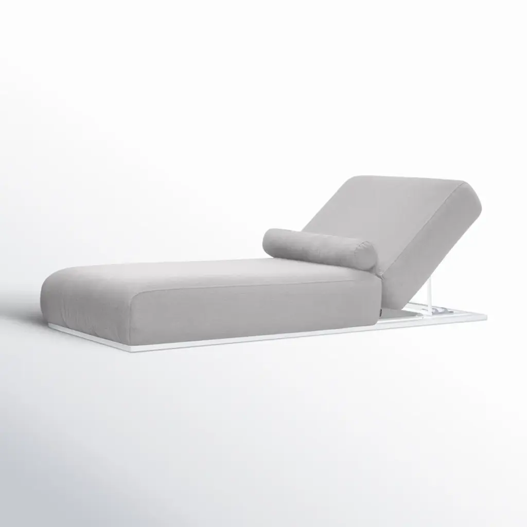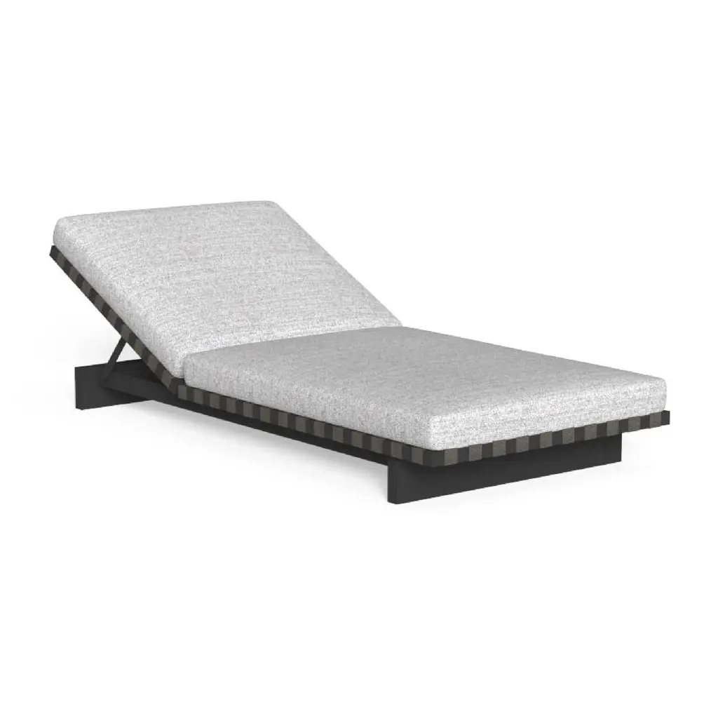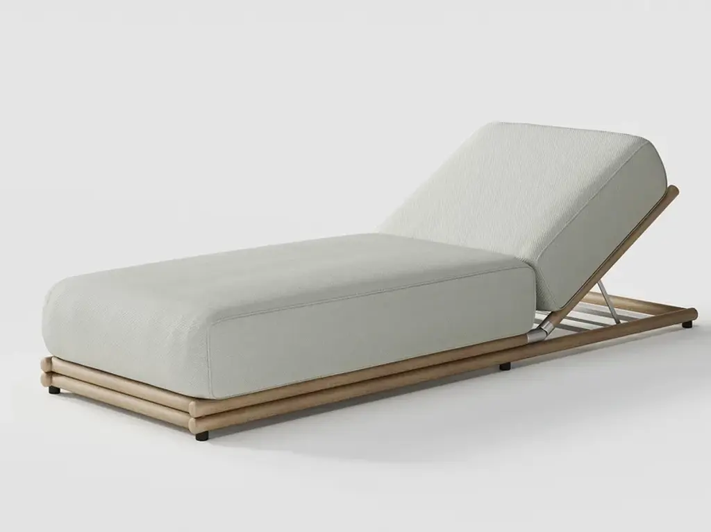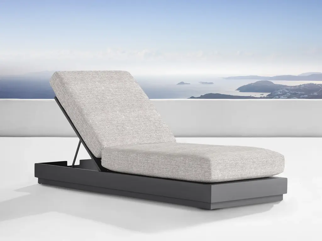 This seating system features clean, square lines. The base is made entirely of aluminum, a lightweight but extremely robust material that is especially suited to use in outdoor settings, given its remarkable resistance to corrosion caused by weather and salt water.The meticulously clean lines of the aluminum structure, epoxy powder-coated in a sophisticated color palette, are combined with roomy seat and backrest cushions that are also square but generously padded and outlined with elegant grosgrain piping.A reclinable daybed can stand alone or be integrated into various arrangements by means of fasteners that are easily hooked and unhooked.The Freeport daybeds are easily stackable for safe storage at the end of the season or in case of necessity.If left unused for lengthy periods of time, we recommend that the Freeport seating be protected with their respective covers to keep them in top condition and maintain their original appearance as long as possible.Most of the parts used in the Freeport seating can be recycled.TECHNICAL SPECIFICATIONSStructure in aluminum with epoxy powder-coat finish in the following colors: white 100, wine red 405, khaki green 705, burnished or grey; or with embossed lacquered finish in white 300, sand 310, brick 320 and sage green 330. Water-repellent elastic webbing in the following colors: white 9007, sand 9001, grey 9003, anthracite 9005Reclinable backrest in solid iroko with natural, stained grey or lacquered white finish. Backrest Recliner System in electropolished 316 stainless steel and bracket in grey thermoplastic materialBolster in polyester fiber with water-repellent casing; upon request with upchargeSeat and backrest cushion in polyester fiber with insert in crushproof single-density material, covered in water-repellent fabricUpholstery piping, fine tailoring includes grosgrain piping that can be crafted in all the colors on the sample boardFeet in aluminum. Rests on tips made of thermoplastic materialUpholstery in removable fabricCover in waterproof material; upon request, with upcharge