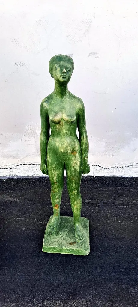 1970 s tree statue , Vintage artist school work .Small Man H: 24 W:6 D:5,5 WOMEN H: 22.5 W:6 D:6