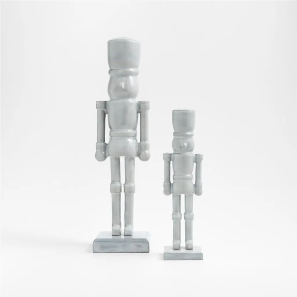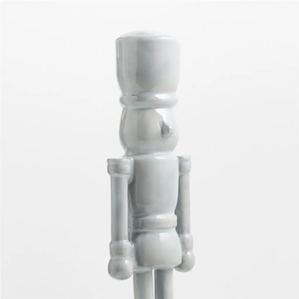 A modern take on tradition, our ever-popular nutcracker decorations stand at attention with minimalist silhouettes. This year we've given the classic Christmastime figure a sheer, glossy finish that creates the look of antique French pottery. Each hand-cast and -finished metal statuette is wonderfully unique. Present the stately sculpture on its own for a striking holiday display, or create a mixed-material cadre of old and new with our other nutcrackers.