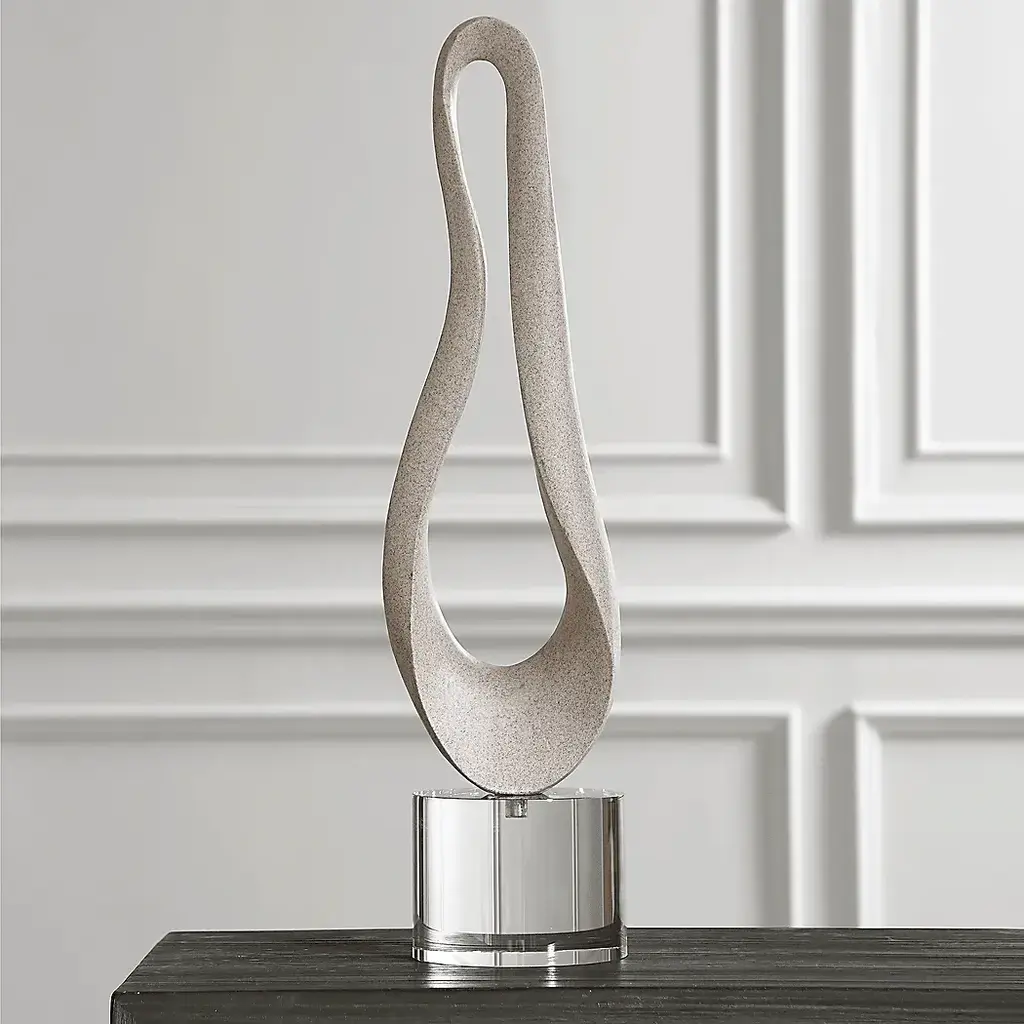 The Fresko sculpture is perched atop a crystal base, adding a touch of contemporary elegance to its timeless form. The subtle interplay of textures and colors creates a harmonious balance, inviting viewers to explore the fluid lines and organic contours that define its unique shape.