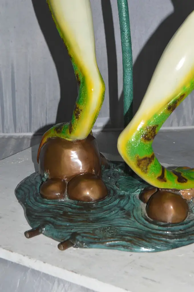 Frog With Umbrella Colored Fountain Bronze Statue - Size: 22"l X 22"w X 43"h.