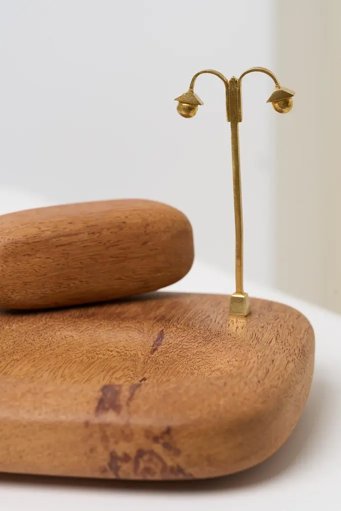 SCULPTURE SERIES FUJI"Difficulties are like mountains. They only diminish when we advance on them.”Japanese proverb—The Fuji sculpture series transcend shapes and meanings. They are daily reminders for those times when big obstacles seem to darken the vision. Mountains of anxiety asking for calmness and light. It takes patience.Rough soapstones, piled up, call for meditation. To think, breathe, inspire. Find a path for yourself that will illuminate the journey, cast in iron and plated in gold. An Oriental lesson to combat everyday sorrows with balance and serenity._Material: Brass and Wood._Price of unit