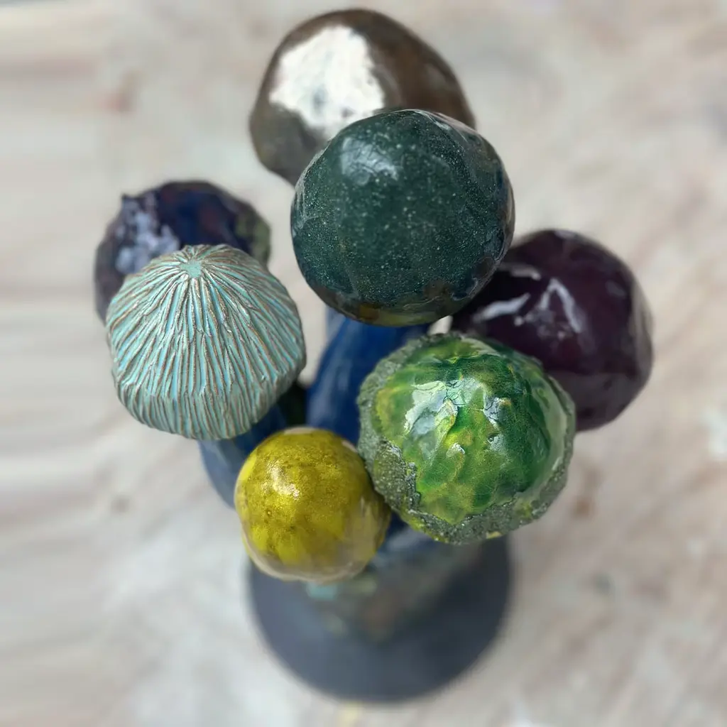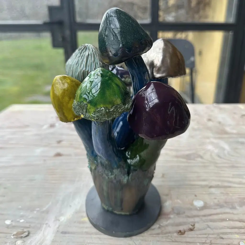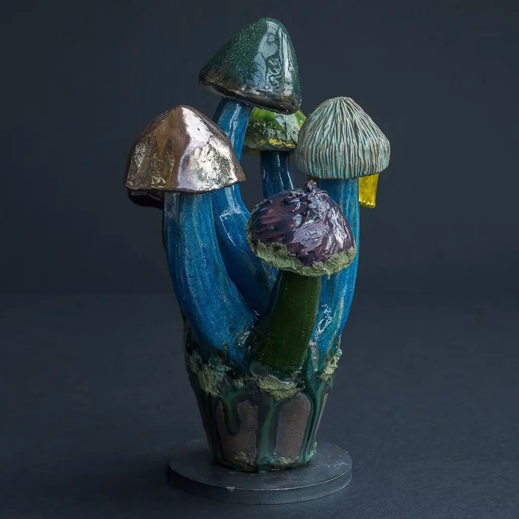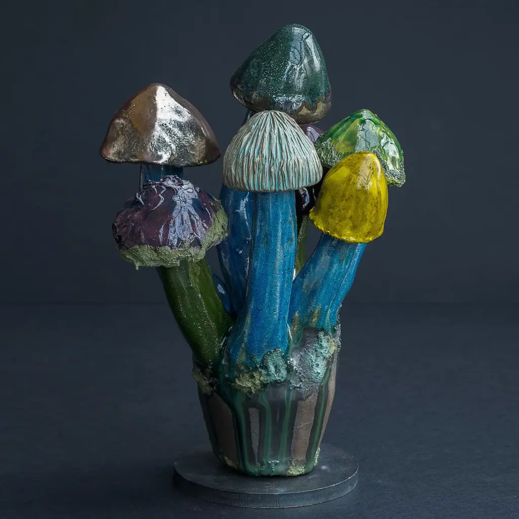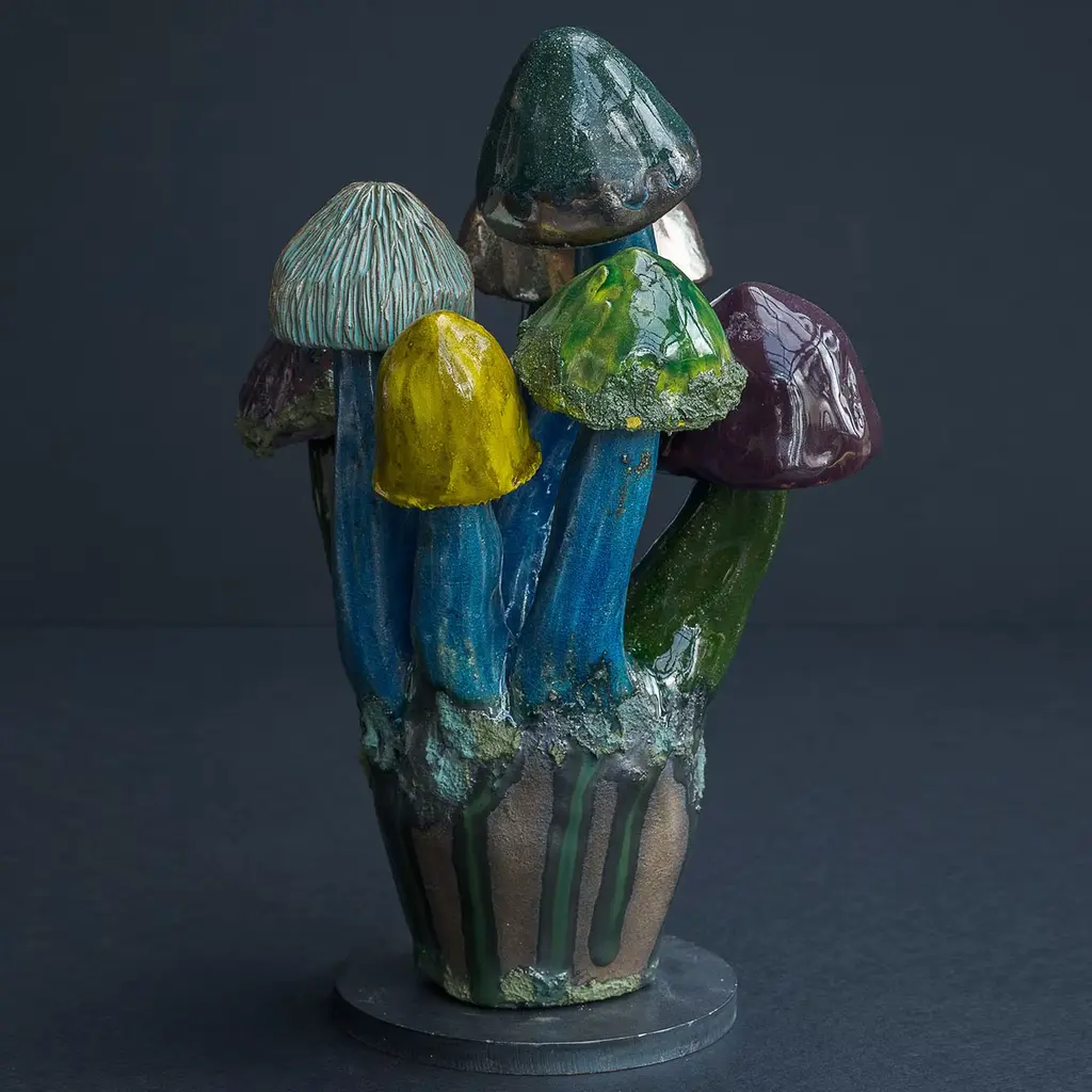 Ceramic sculpture inspired by the natural world of Mushrooms, made with different clays and techniques, every single piece is handcrafted and hand-painted thus making it unique. It has a rounded iron base to ensure a perfect balance. Funghi are Pop Icons: some people collect them, some others love to eat them, some heal themselves through their power and everybody has somehow a childhood memory of “fungi”.