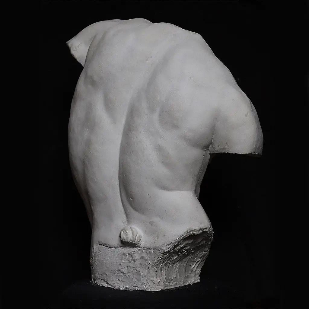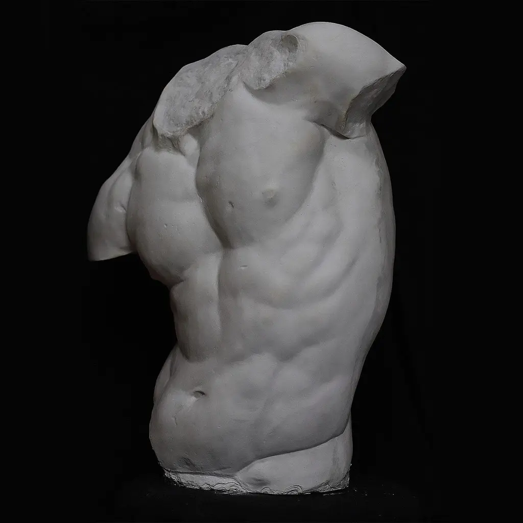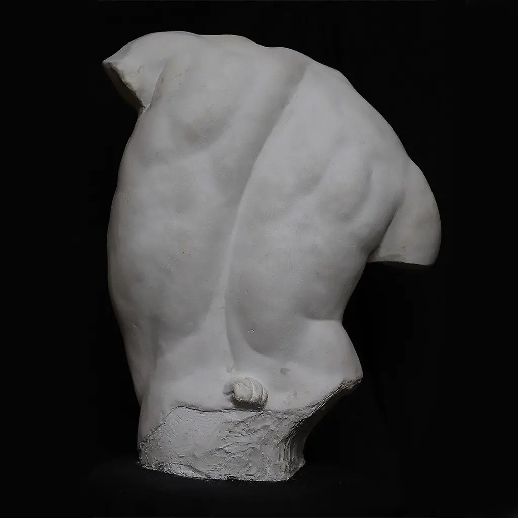 This is a plaster bust reproducing the Torso Gaddi, the famous fragmentary sculpture displayed in the Uffizi Museums in Florence, which inspired many great artists of the Renaissance, including Michelangelo. The piece, handcrafted by the skilled artists of Galleria Romanelli, puts the emphasis on the study of anatomy and muscles, thanks to the peculiar pose called "contrapposto".