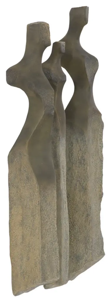 The concept behind this cast aluminum sculpture is that we all have inner strength within ourselves even if we don't realize it. One champagne figure stepping out from the other black nickel figure symbolizes the brightness of that strength we all share.