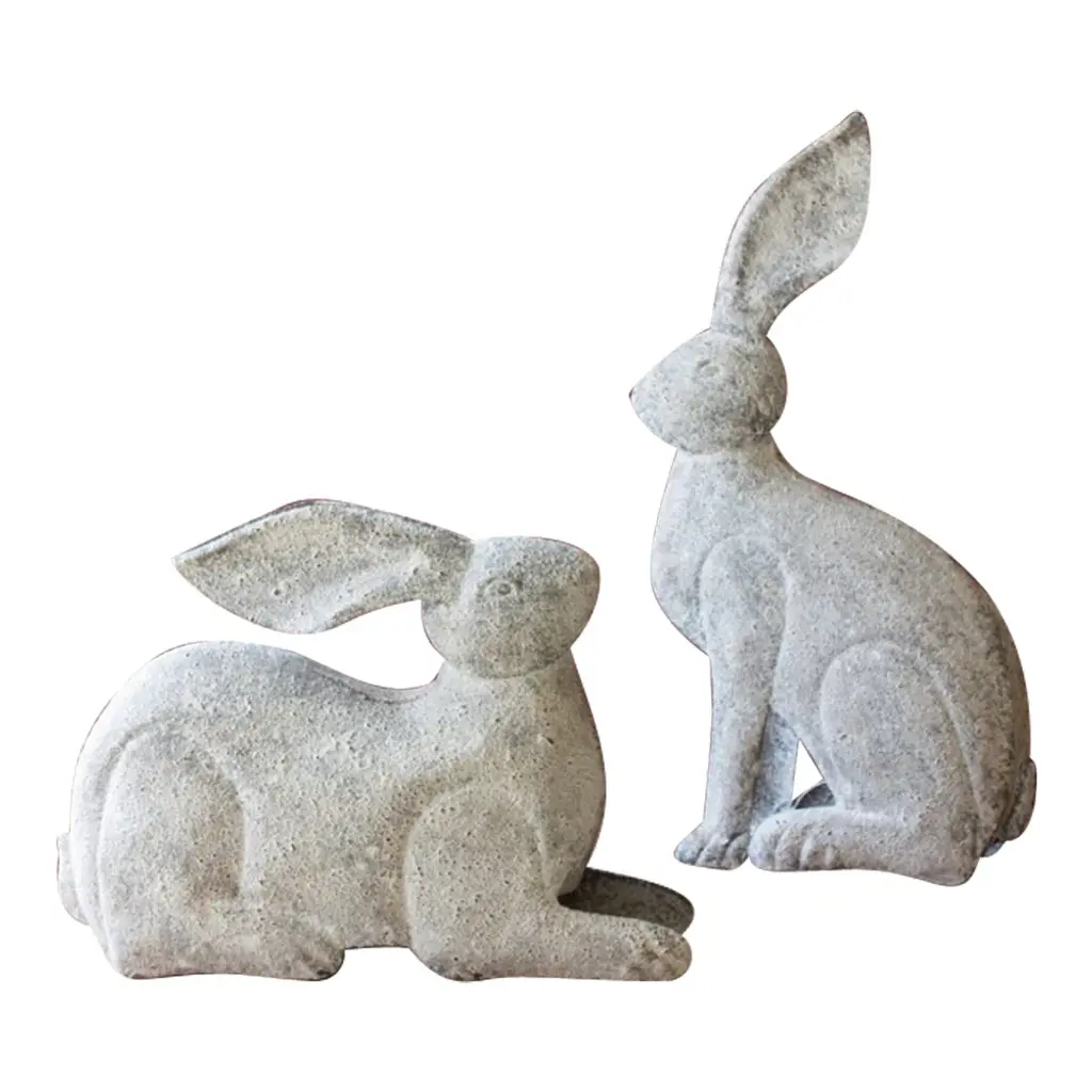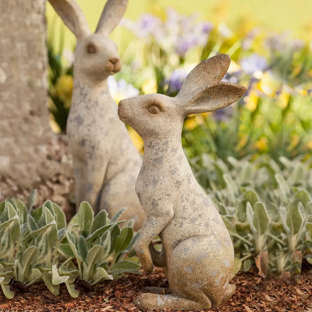 Embrace all the charm and whimsy of spring with this sweet set of garden rabbit sculptures, each sitting in a playful stance. The weathered finish gives the appeal of a vintage find, making every day a good hare day.