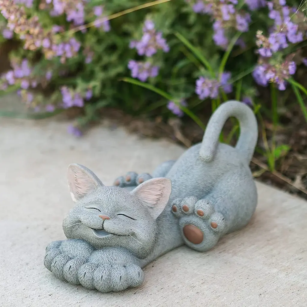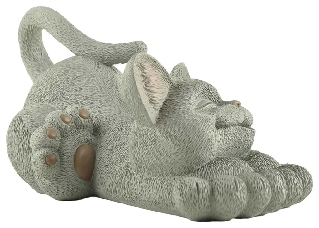 Features:Large Happy Cat Lounging Garden Statue (Grey)Dimensions: Length: 12" x Width: 7" x Height: 5"Material: Hand Painted ResinMade for indoor and outdoor useHigh Quality - This Happy Cat Lounging Garden Statue is solid and has weight too it!