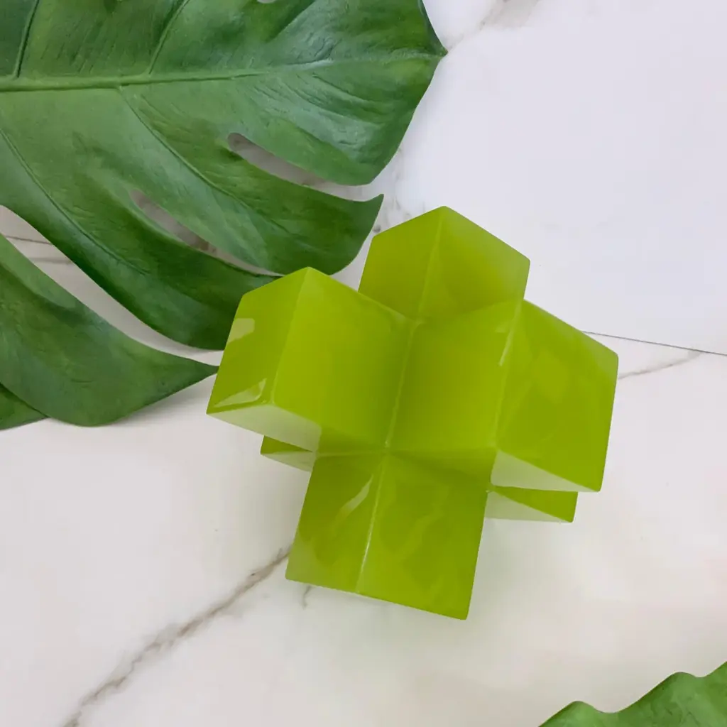 Geometric Sculpture In Polished Lime Green Resin By Paola Valle