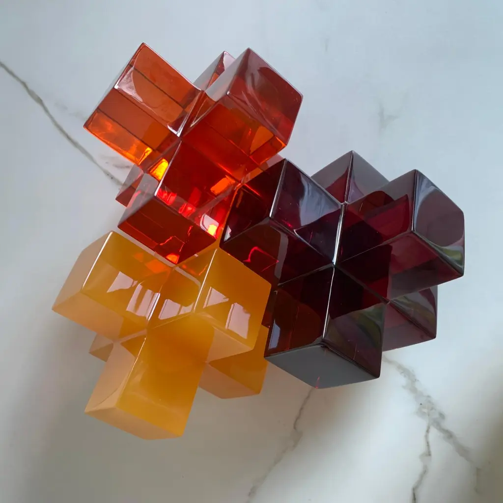 Geometric Sculpture In Polished Tangerine Resin By Paola Valle