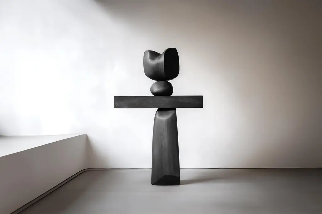 Geometric Wooden Sculpture Lull No104 by Joel Escalona – Ideal for Interior Design———Balance and tension are at the core of these sculptures. The interplay between the smooth, rounded forms and solid, angular bases creates a delicate equilibrium that invites contemplation. Fragile elements seem to find strength in their very vulnerability, constantly negotiating their own stillness. The tension remains present, yet never descends into chaos, evoking a quiet pause, a moment of serenity in the motion of life.The juxtaposition of curved, pebble-like shapes against straight-edged bases mirrors the harmony between the organic and the geometric. These forms feel both natural and sculpted, as though shaped by the slow, deliberate hand of nature and the precision of craftsmanship. It’s as if these pieces rest in a moment of perfect balance—a pause between forces that seem at odds, yet together, create something deeper and more profound.This collection embodies a monumental idea—one that celebrates the subtle tension between fragility and endurance. Though the forms may appear delicate, their strength lies in resilience. Each sculpture stands tall and quietly powerful, offering a sense of solace in stillness, a reminder that stability can emerge from the most unlikely structures.These pieces explore the delicate dance between opposing forces, where solace and tension coexist in harmony. The most meaningful moments in life often come from these pauses, from embracing the quiet spaces between movement. These sculptures whisper a truth—that transformation often finds its roots in stillness, in the spaces between tension and release.Each sculpture is crafted from solid wood in our workshop in Mexico City, ensuring no two pieces are ever alike—not only in form, but also in the natural texture and tone of the wood itself. Just as no two trees are the same, each piece carries its own unique character, shaped by the grain and color variations of the wood. This natural diversity is what makes each sculpture truly one-of-a-kind. These works are made to order, allowing the time and care needed to ensure that every piece reflects its own individuality and beauty, celebrating the organic and the serene pause within the material.——NONO is a Mexican design brand with more than 10 years of experience dedicated to the production of interior furnishings, editions, and custom-made projects. At NONO, we create pieces of extraordinary beauty, accommodating the particular needs and tastes of each client with exclusive high-quality designs.————Some details to consider when placing an order with us:• Catalog images are digitally generated. Actual products may slightly vary in texture, grain, and final finish due to natural material differences. Despite these variations, our expertise ensures each piece maintains high quality and matches the intended design.• All of our products are made to order, and the lead time for standard products is estimated to be 9 to 12 weeks, plus shipping time. However, special pieces or sculptures may require a longer lead time.• We offer customization in dimensions and finish for all of our furniture pieces, which may result in additional charges.• We only facilitate freight services by a third party. The client is solely responsible for any associated import/export taxes, as well as any necessary customs paperwork.• We are not responsible for any damages that may occur during shipping or for any customs-related delays.
