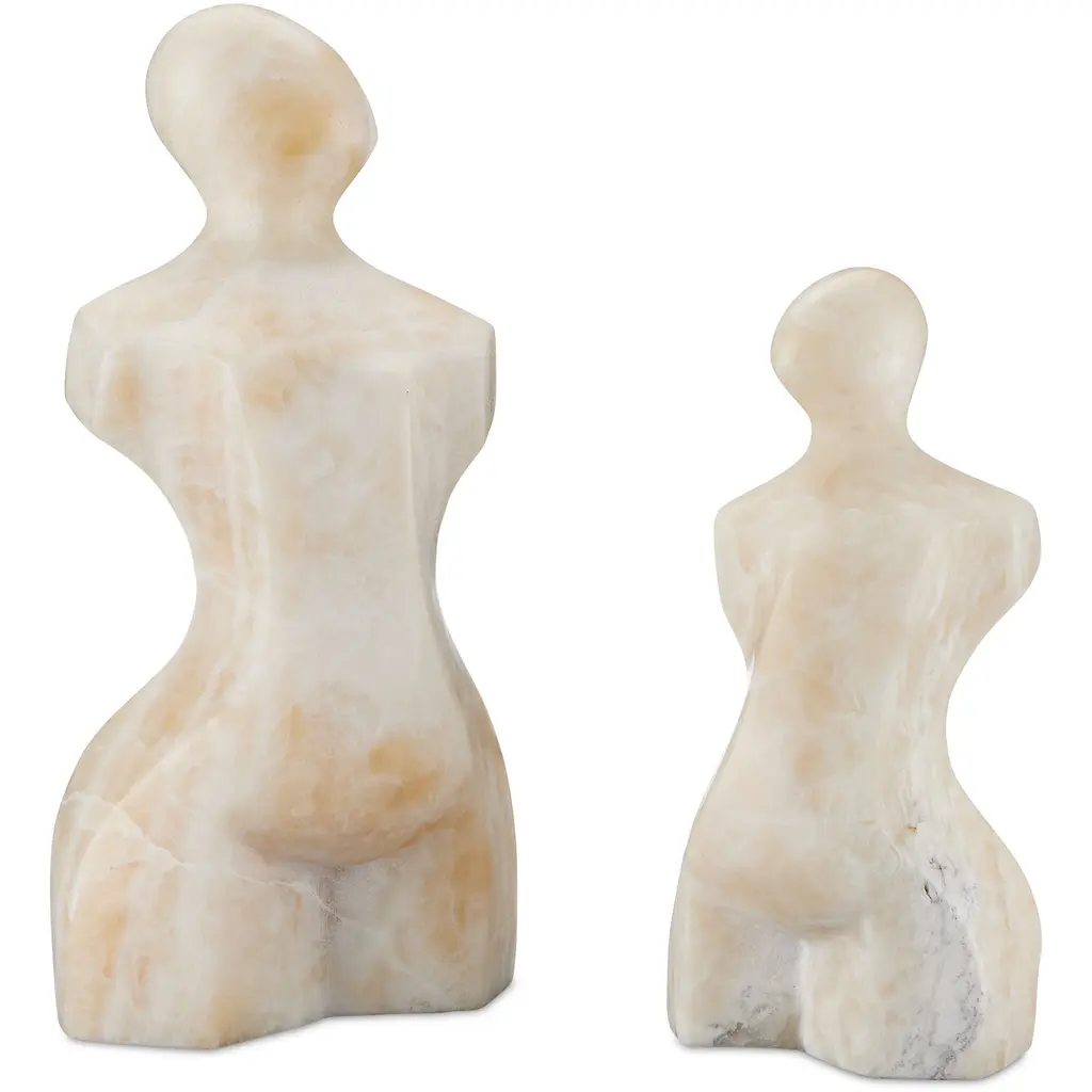 Made of natural stone, the Giada Onyx Large Bust Sculpture has a contemporary profile with clean lines that are enlivened by the natural veining and drifts of color in the honey onyx. The stone sculpture is carved by hand and honed to have a smooth surface. The shading on this sculpture will vary from piece to piece, given it is made of natural stone.
