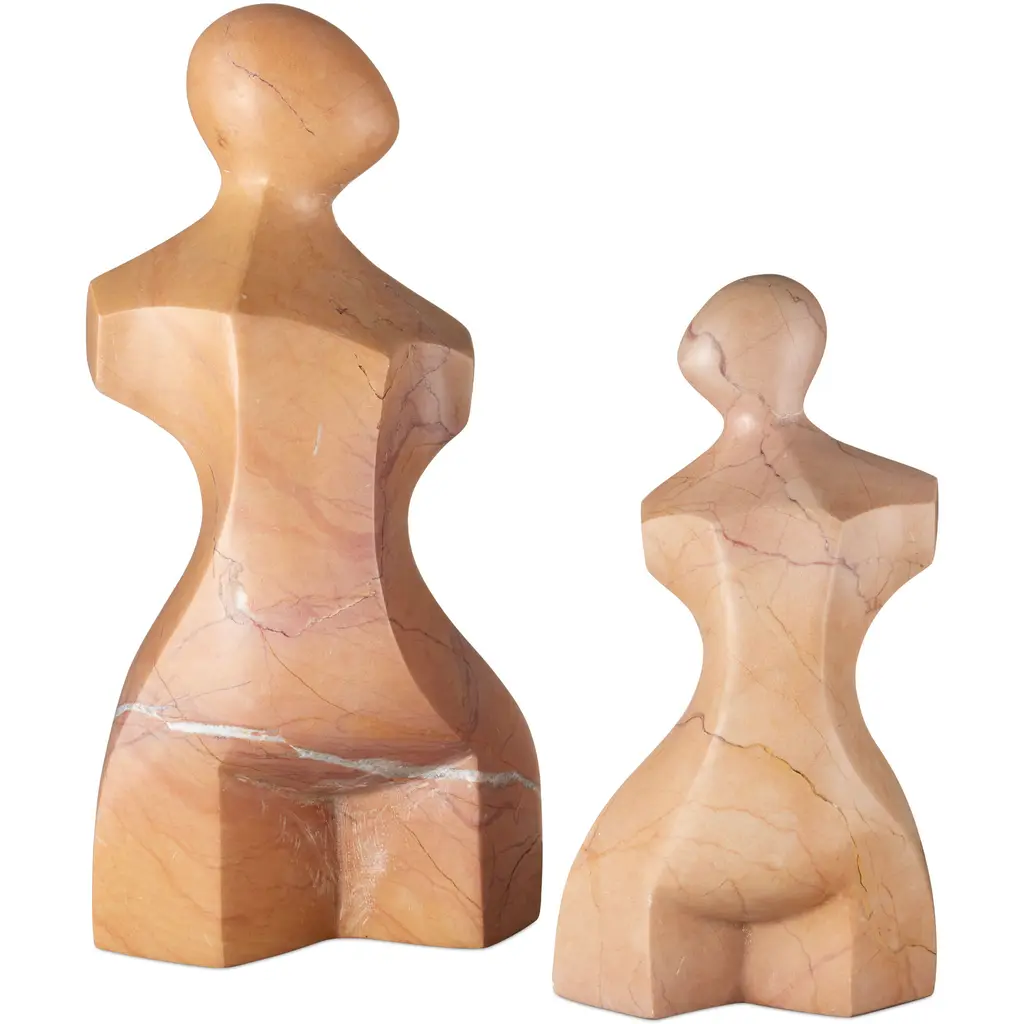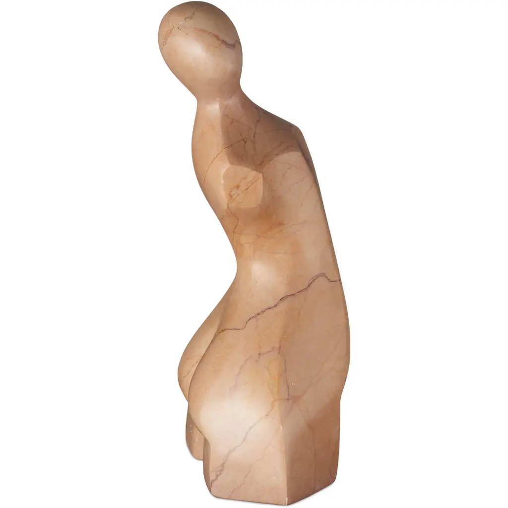 The Giada Rosa Small Bust Sculpture is crafted from exquisite Rosa Cappuccino marble. Its surface features a stunning interplay of darker and lighter veining that crisscrosses the stone, adding depth and dimension. The sculptures clean, pared-down lines provide a striking contrast to the voluptuous curves of the form, making it a sophisticated statement piece.